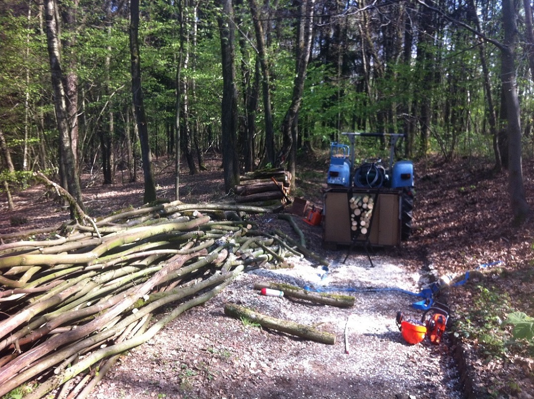 Heute kurz im Wald gewesen und die neue Säge ausprobiert. Gefällt mir sehr gut. Angefangen den Ahorn-Polter klein zu machen. Mit Sägebock und direkt in die Heckkiste.