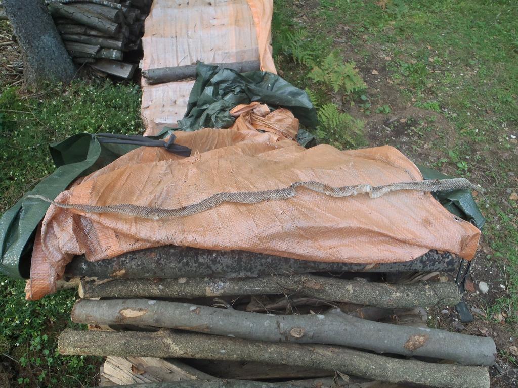 Im Holzstapel müssen recht ausgewachsene Schlangen gewesen sein. Diese Haut ist gut 140 cm lang!