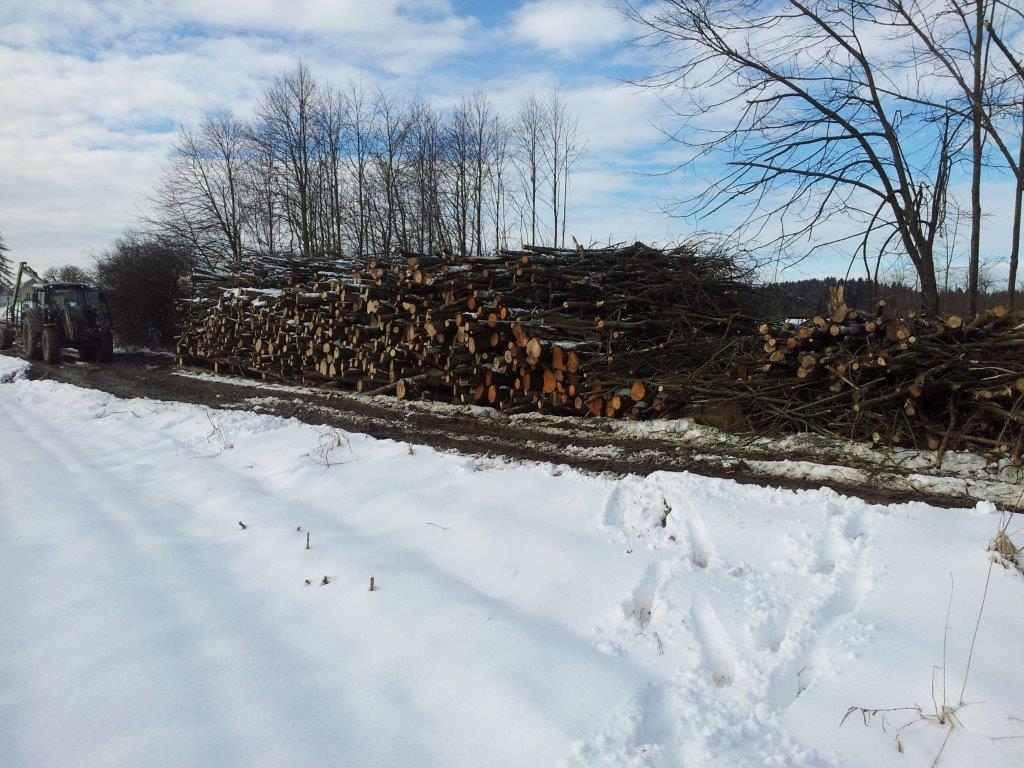 nachdem mein Bruder heute ausfiel (Rückenprobleme) und es ausgiebig geschneit hat, war ich alleine unterwegs. Alle Sägenketten gefeilt, sauber gemacht, Zufahrtswege zum Holzlagerplatz geräumt und ein paar Buchenstämme abgelängt und gestapelt, aber seht selbst.