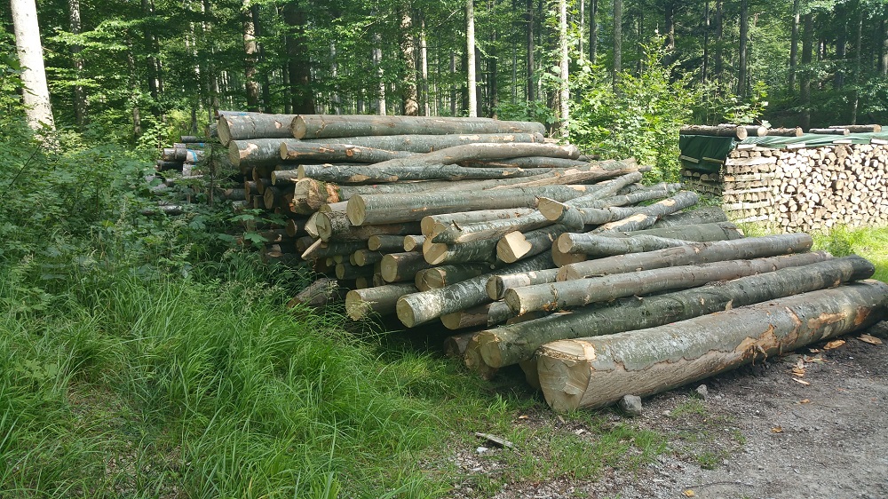 Die Firma Hasslacher Norica Timber hat uns (und 3 weiteren Waldnachbarn) dazu ein vernünftiges Angebot gestellt und arbeitet den Windwurf per Harvester auf.