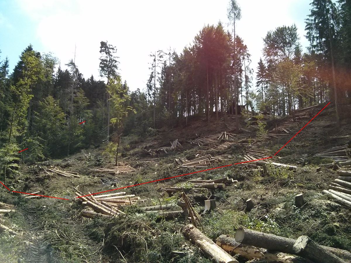 Das Ganze ist dann auch noch aufzuforsten, die Parzelle hat ca. 13.000m² und etwa 2/3 ist nun Kahlschlag.