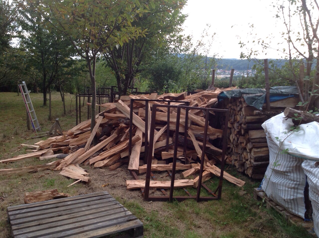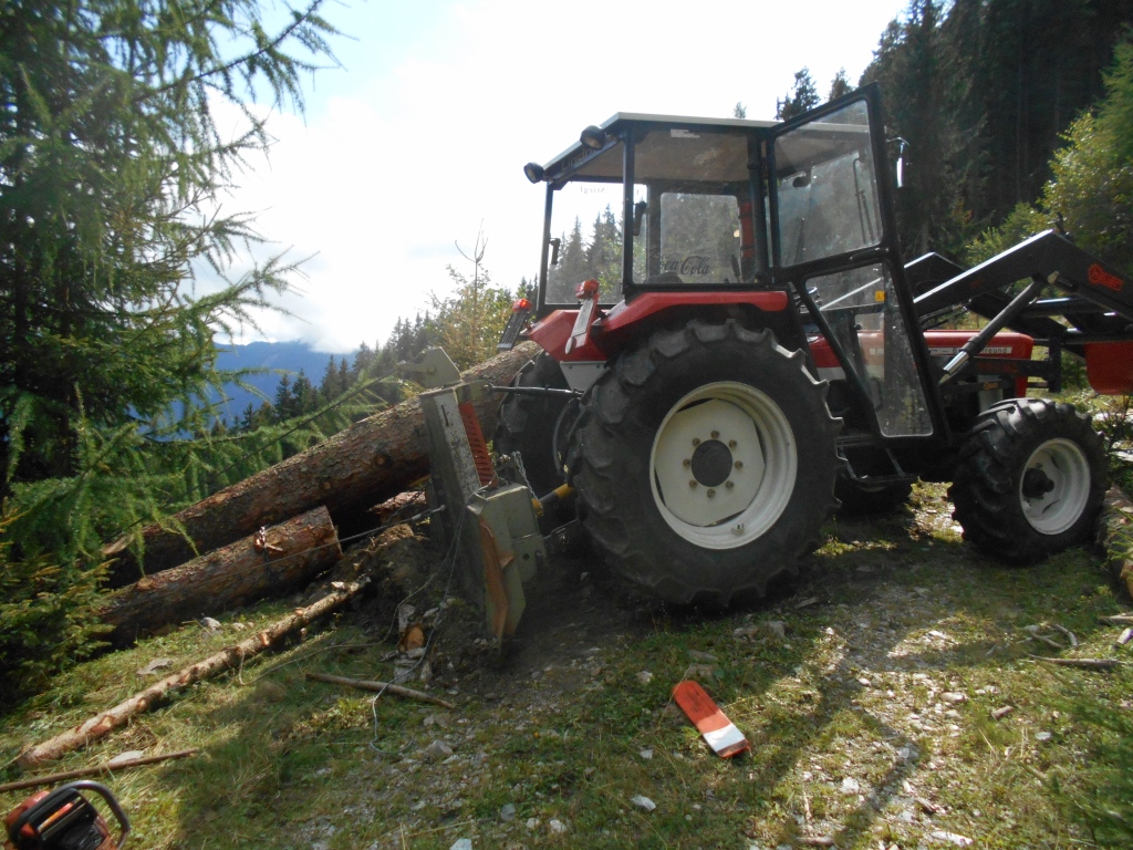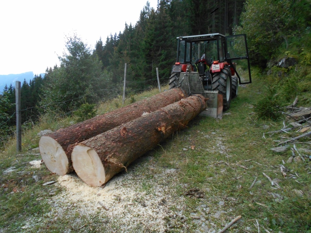 auch bei mir hat sich wieder was getan, mittlerweile hat der frächter 2 lkw züge abtransportiert, was sich bei den kleinen platzverhältnissen als nicht allzu einfach herausgestellt hat. hier ist der krananhänger eine sehr große unterstützung, um das holz zu poltern. nebenbei habe ich für einen zukünftigen unterstand für die rinder stangen geschöpst