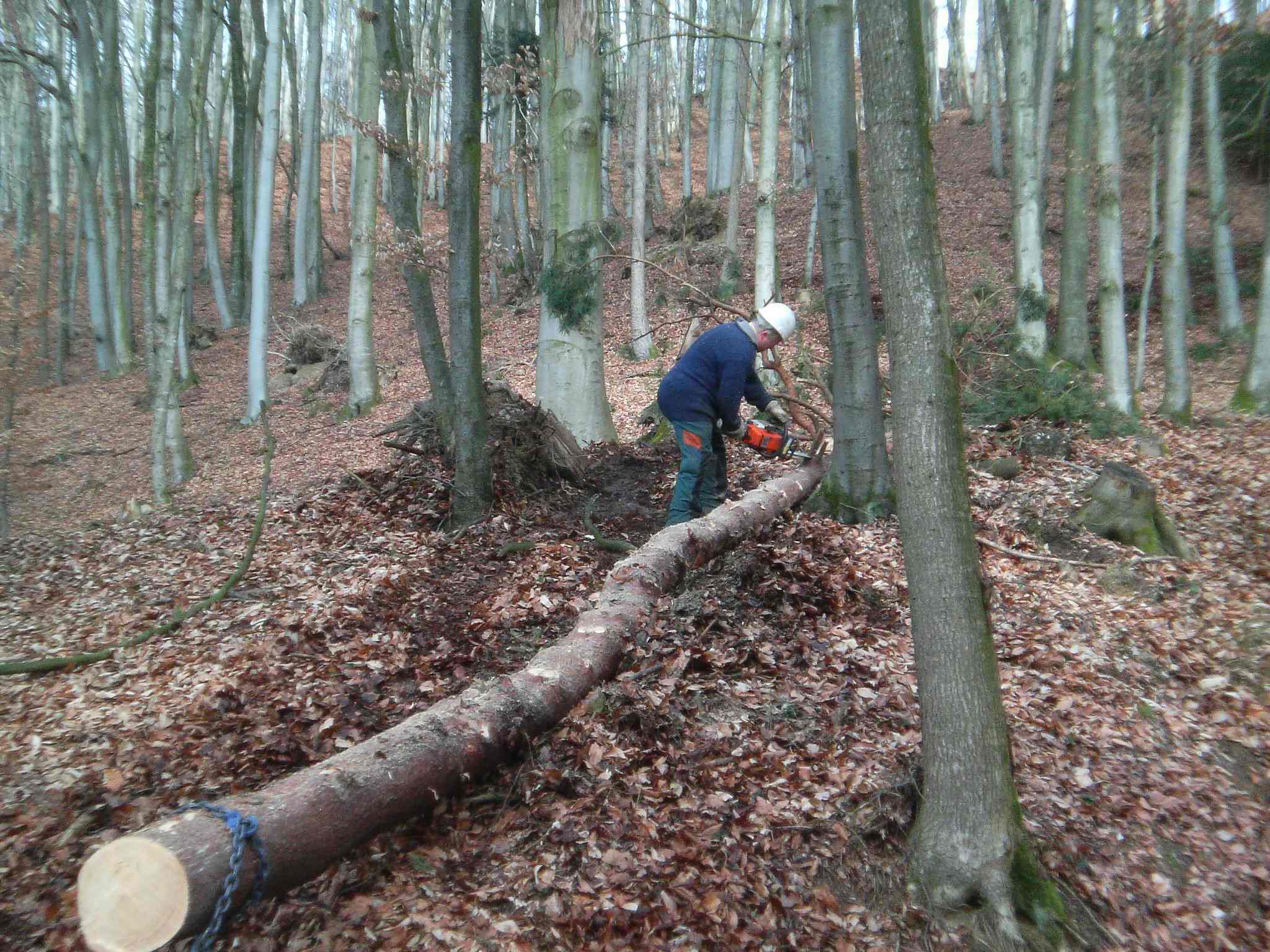 Das Seil läuft über eine Umlenkrolle an der Bergstütze nach vorne.