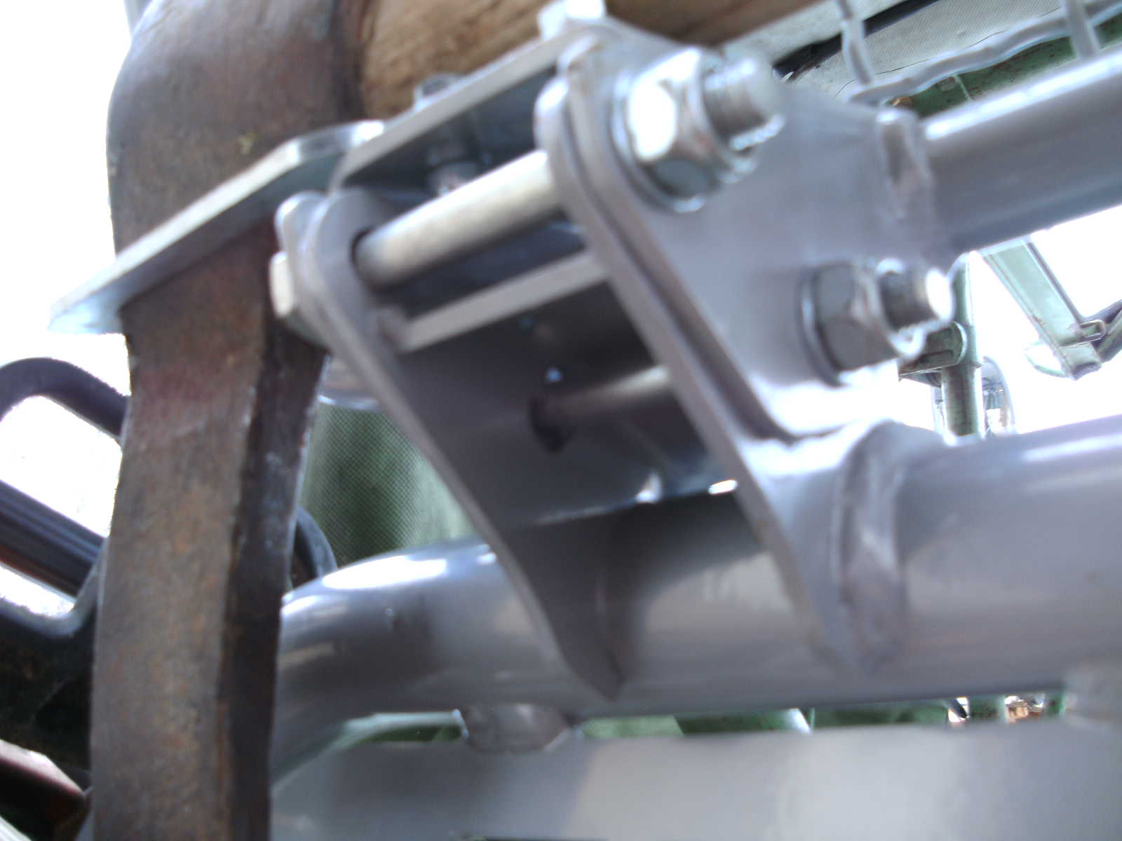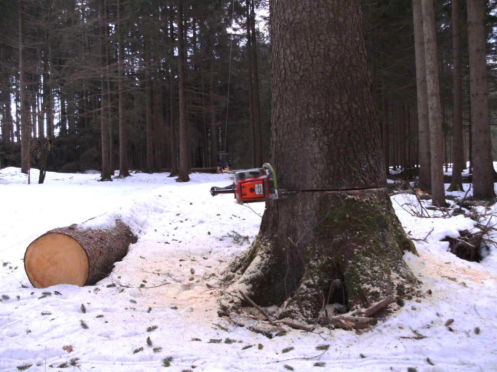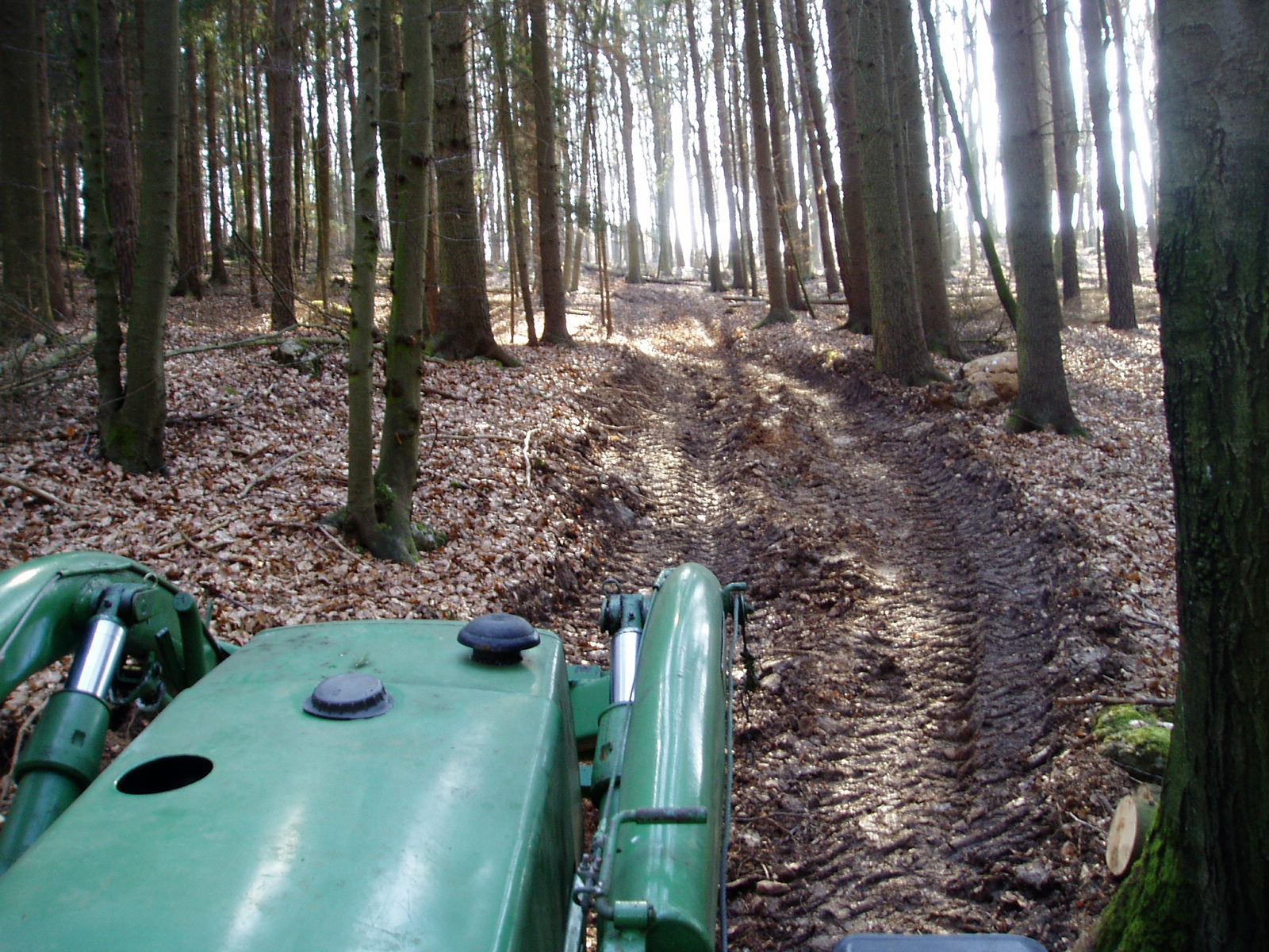 Meine Tajfun hatte heut (gestern) ihren ersten Arbeitseinsatz im Wald. Bin recht zufrieden mit ihr. Vorher hab ich 2 Umbauten gemacht: Den Sägenhalter schräger gestellt, sonst hätts nen Crash zwischen Motorsäge und Rücklicht gegeben; und das Schutzgitter hab ich mittels Langlöchern verstellt, sonst hätt sichs am Sturzbügel verbogen.
