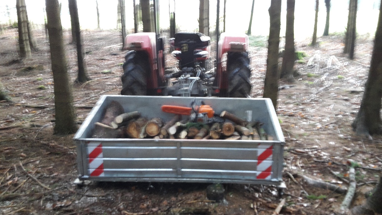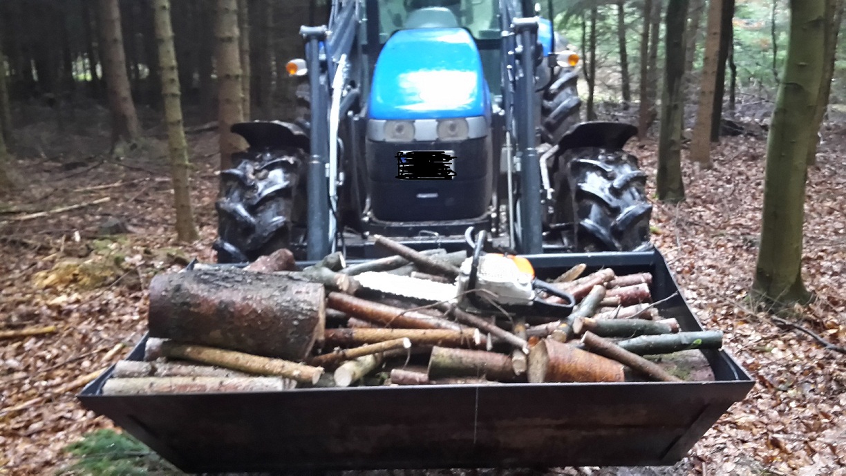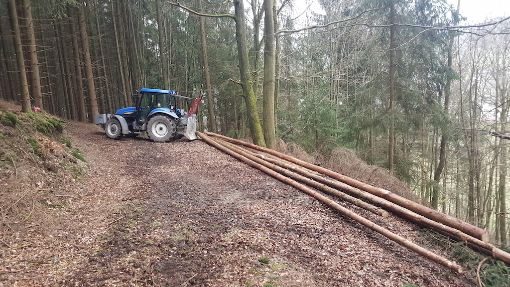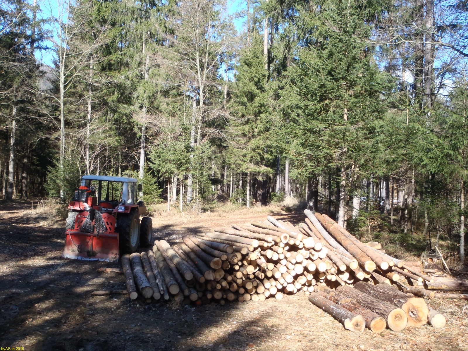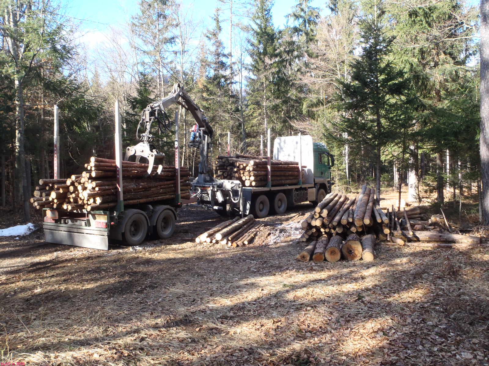Da war ich aber schon im Wald, um noch 'paar krumme Stangen umzusäbeln, weil vom Gefühl her noch etwas Holz zum vollen LKW-Zug gefehlt hat ...