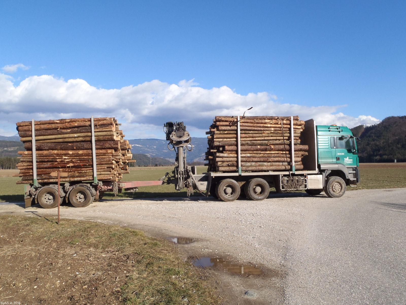 Die Abfuhr von meinem Faserholz hat heuer wesentlich besser geklappt als im Vorjahr! Erst hieß es: nicht vor April. Gestern dann ein Anruf: noch diese Woche. Heute: in einer Stunde!