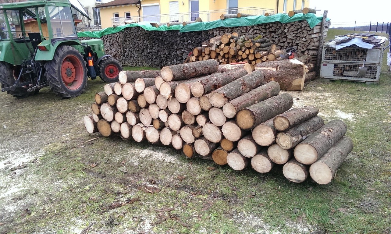 haben heute morgen die Stämme die wir in den letzten Wochen aufgearbeitet haben per Rückewagen nach Hause gebracht.