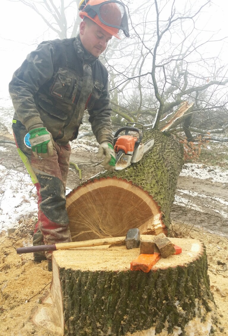 4 Eichen Fällen, aufarbeiten, zum Besitzer Transportieren und für uns einen Hänger Hackschnitzel abzwacken