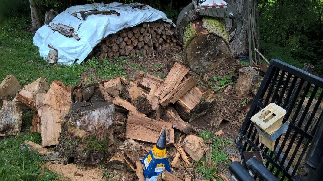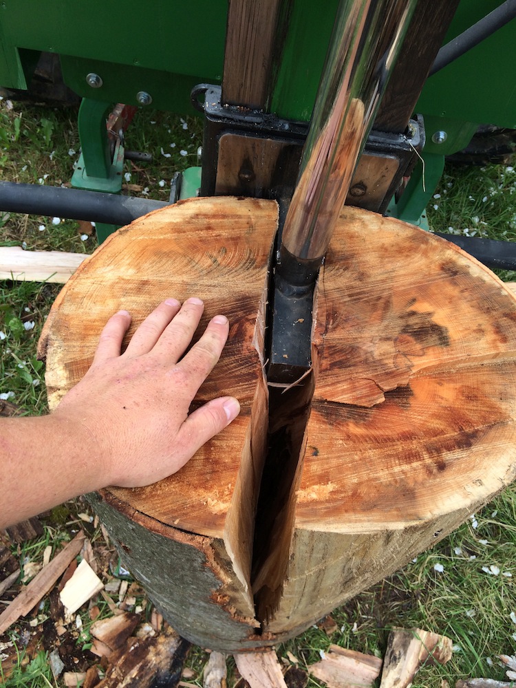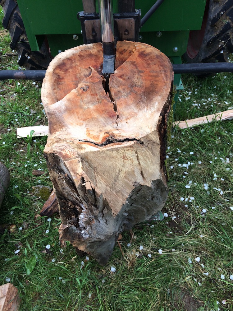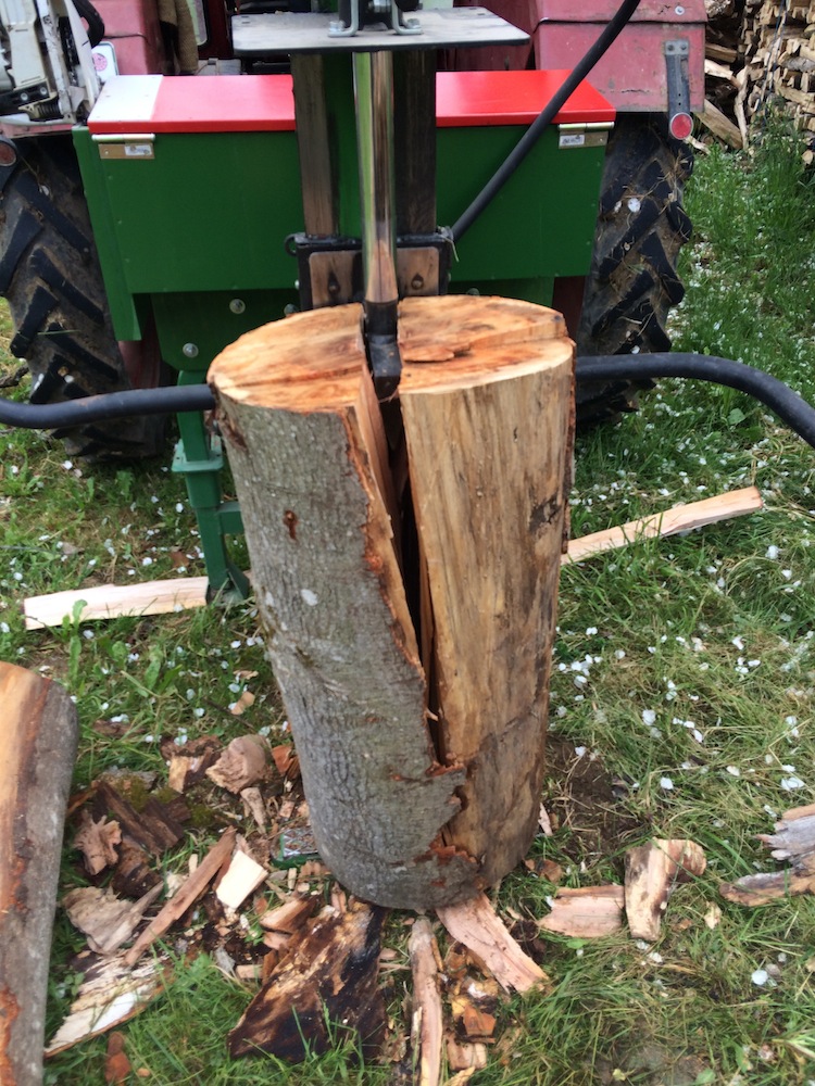 Nur ein par um zu zeigen was ein 45Ps Slepper im Standgas und ein 13t Spalter ohne Mühen klein bekommen.