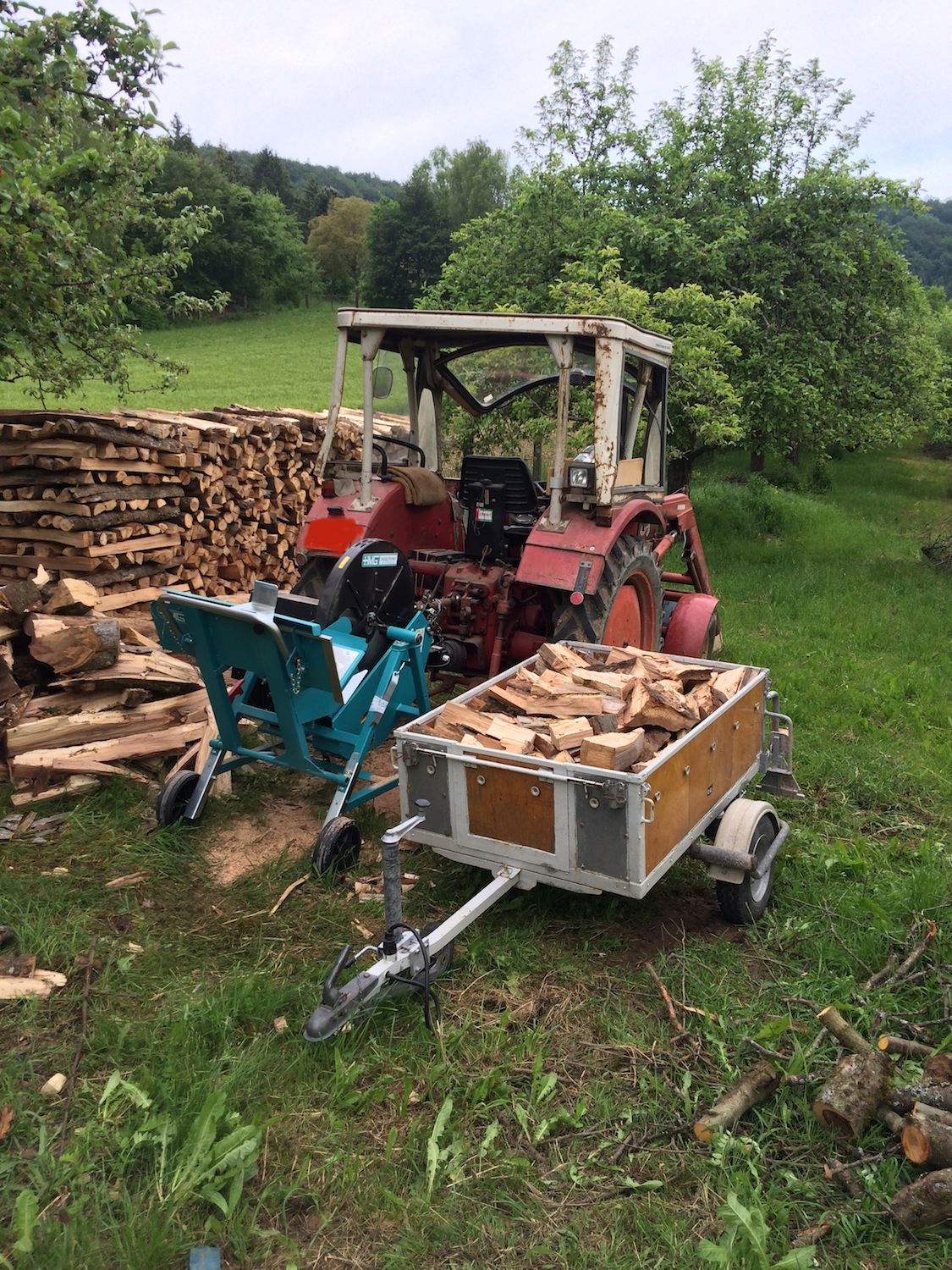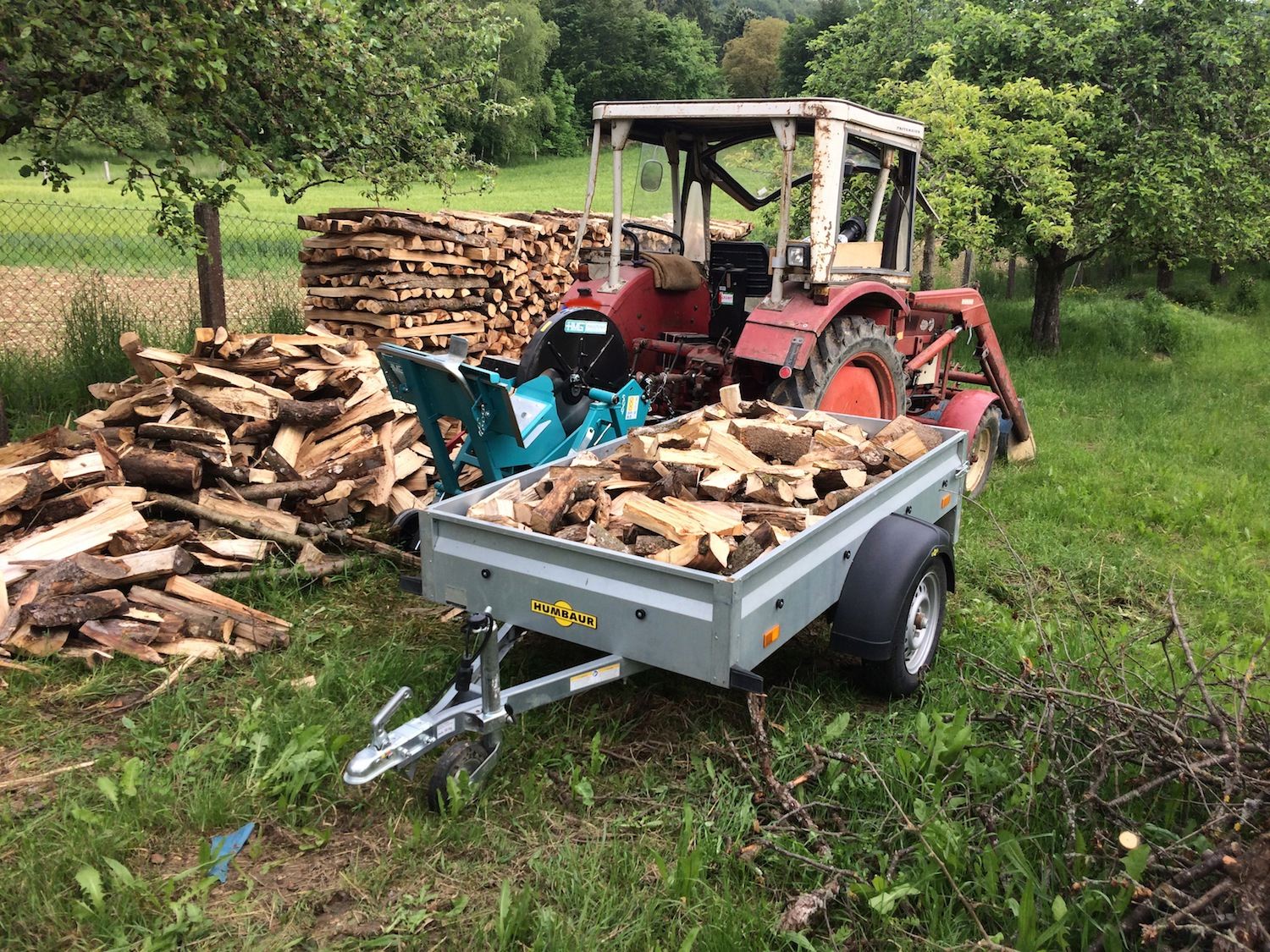 Altes Brennholz vom Besitzer abfahren und meine Straßenverunreinigung von gestern noch wegkratzen.