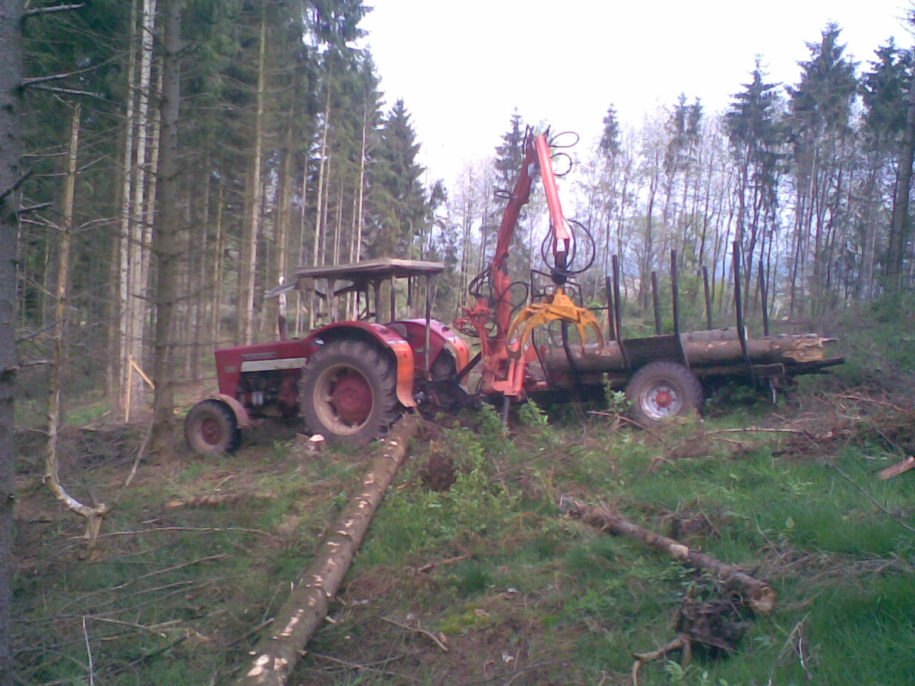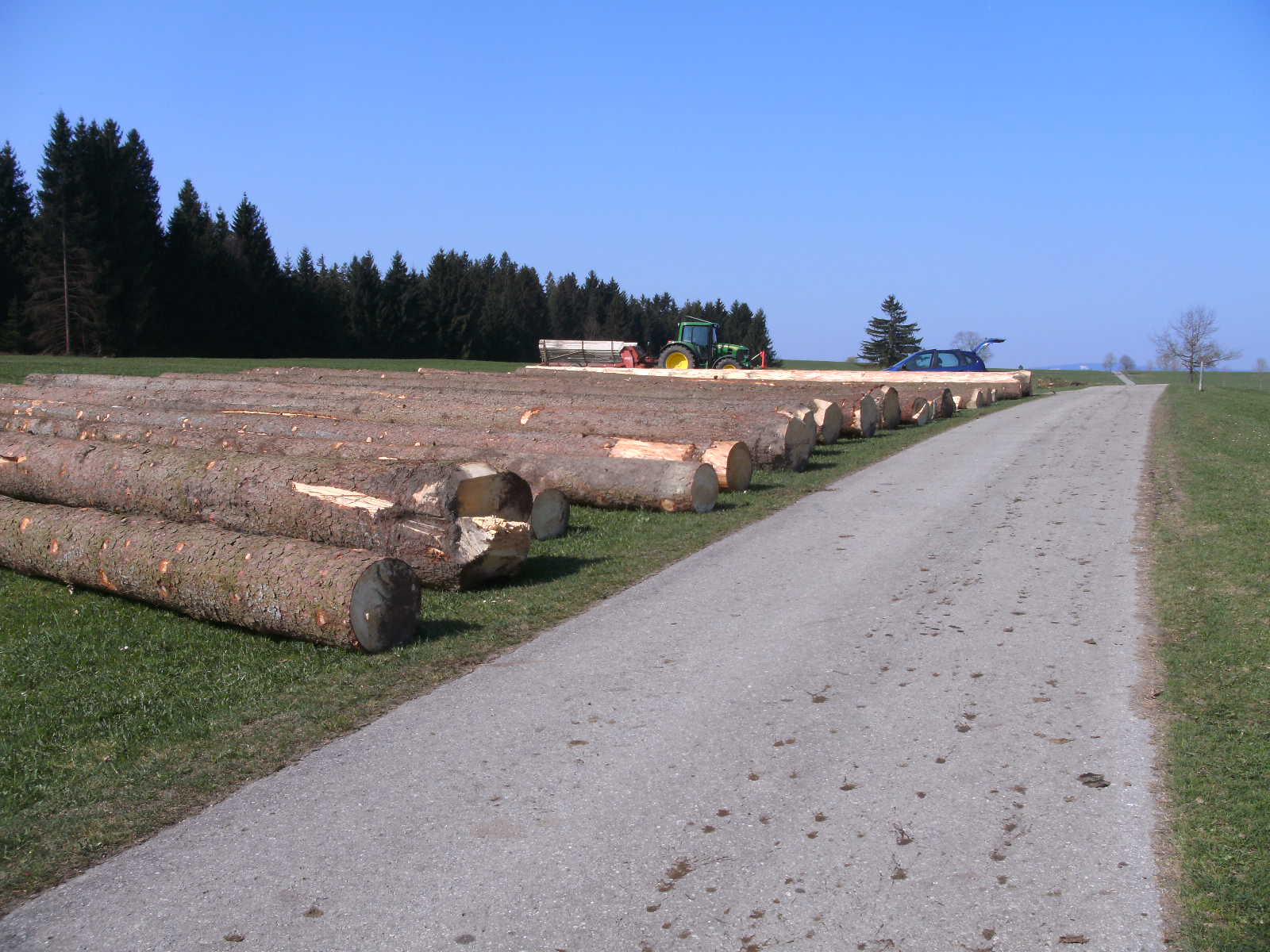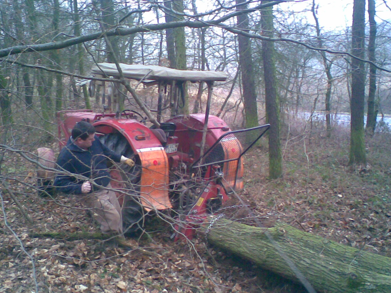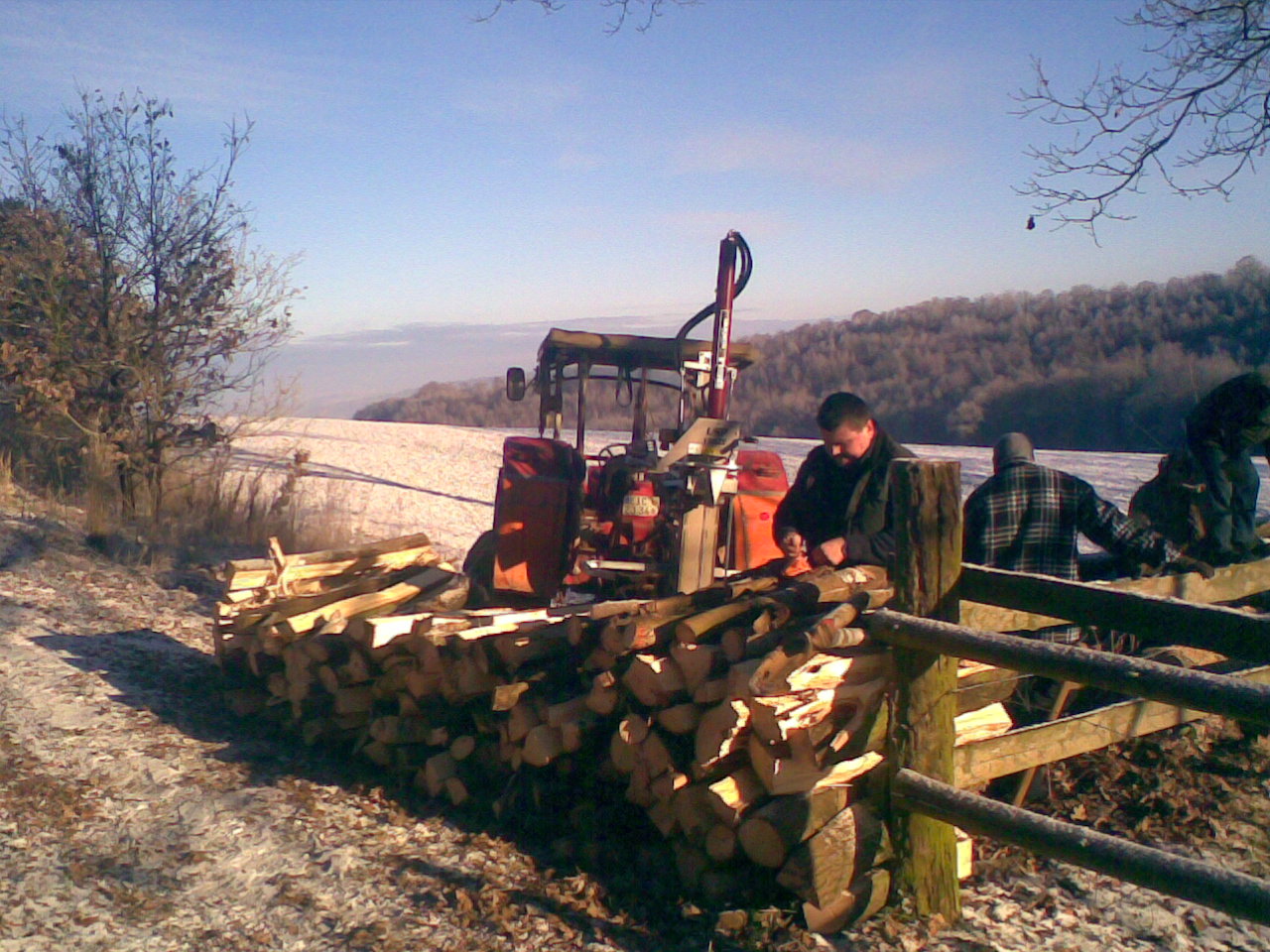 Ausrüstung war ziemlich spartanisch, Traktor mit Einachser, Traktor mit Heckschaufel, 3 Personen, 2 Praxen, 1 Hacke, 1 Motorsäge Typ Husqvarna 346XP (die einen auf "die Axt im Walde" gemacht hat) 1 Flasche Mineralwasser 1 Flasche Most. 3 Paar Handschuhe um das wichtigste nicht zu vergessen.