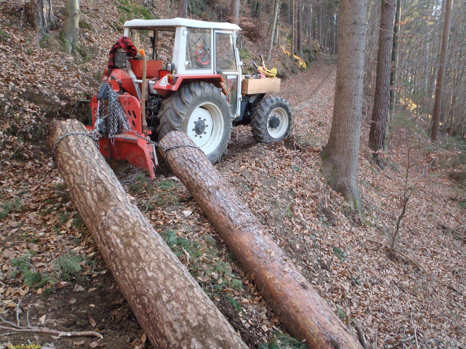 Diese beiden Fichten mussten für eine geplante Wegverbreiterung weg. Ich komm' da ja locker 'dran vorbei, aber der nächste Parzellenbesitzer mit seinem dicken NH