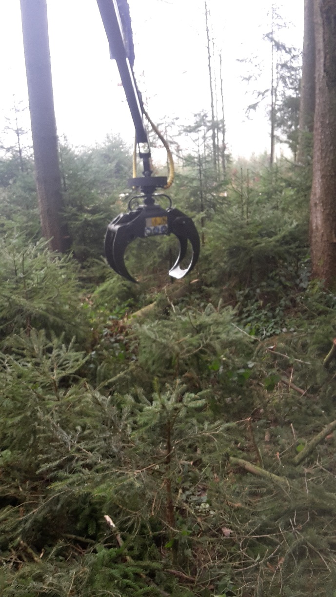 Sieht mir eher so aus, als wollte der die geschnittene Fichte an den rechten Platz schreien.