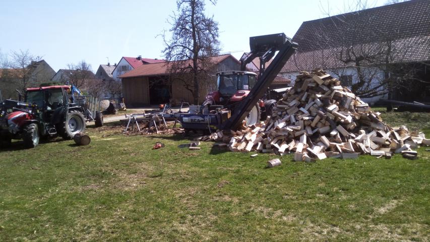 Es wurden bis jetzt in etwa 35 RM Holz gespalten und aufgesetzt.