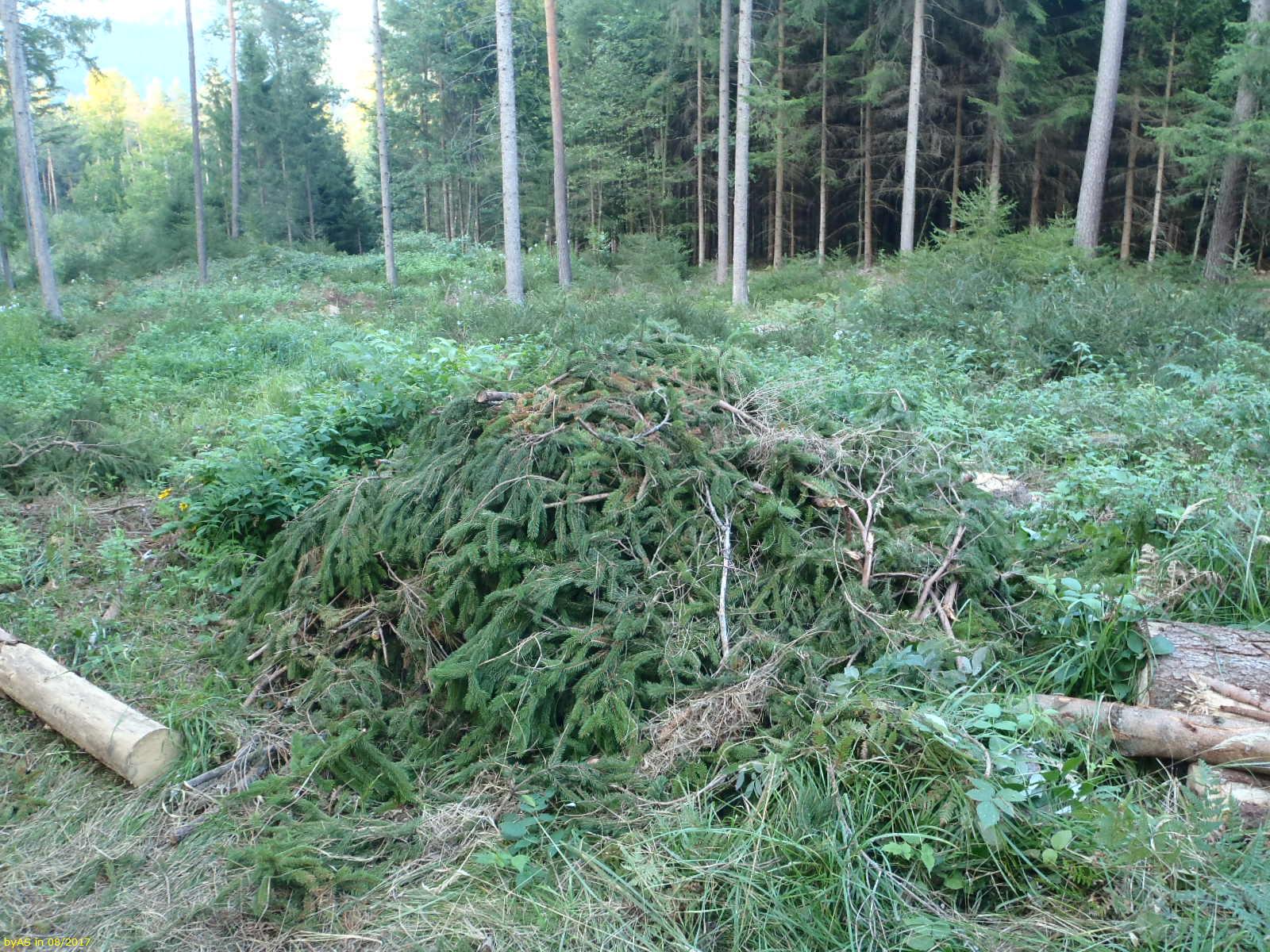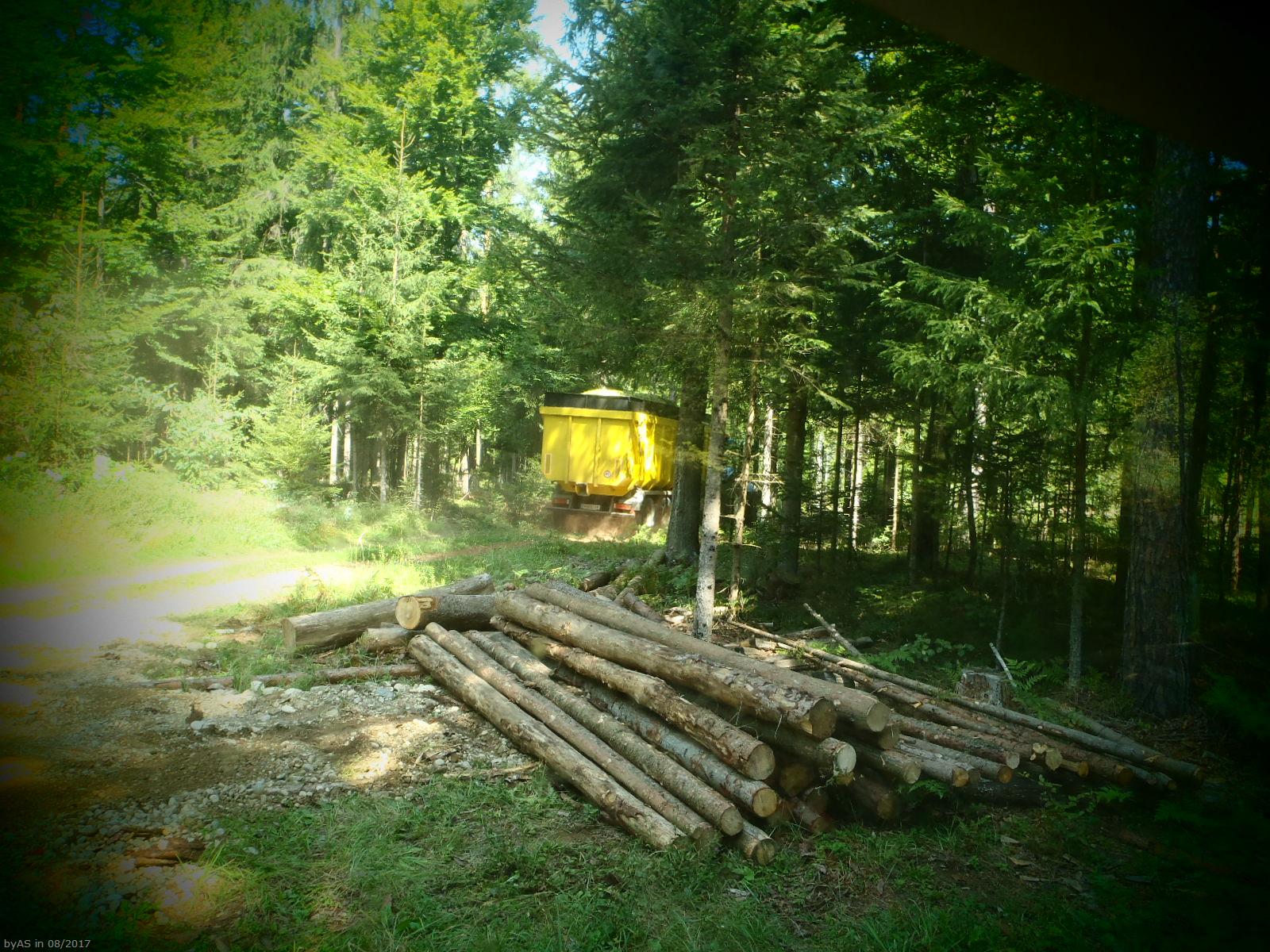 Ich fahr alles Kronenholz mit em Kranwagen nach Hause und rechne dann mit em Förster ab, wenn ich komplett fertig bin. Und wegen 5-10 Ster mehr oder weniger macht der sich nicht verrückt.