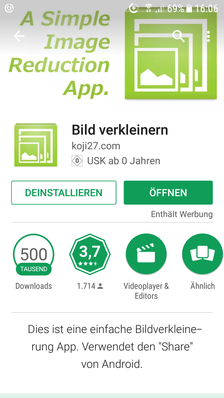 Es gibt aber auch für das Smartphone Apps zum Verkleinern von Bildern, oft getarnt unter "für den Versand per email ..."