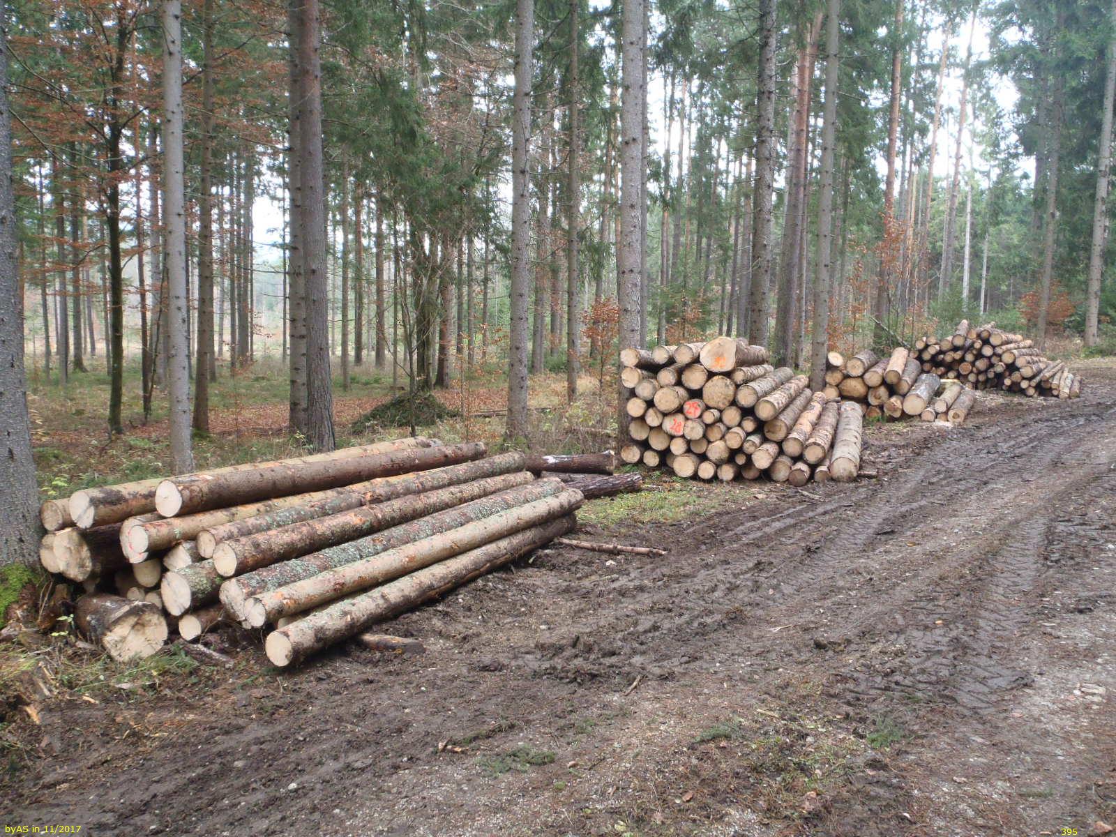 Die Fichten wachsen an diesem Standort eher mäßig. Ist sehr naß.