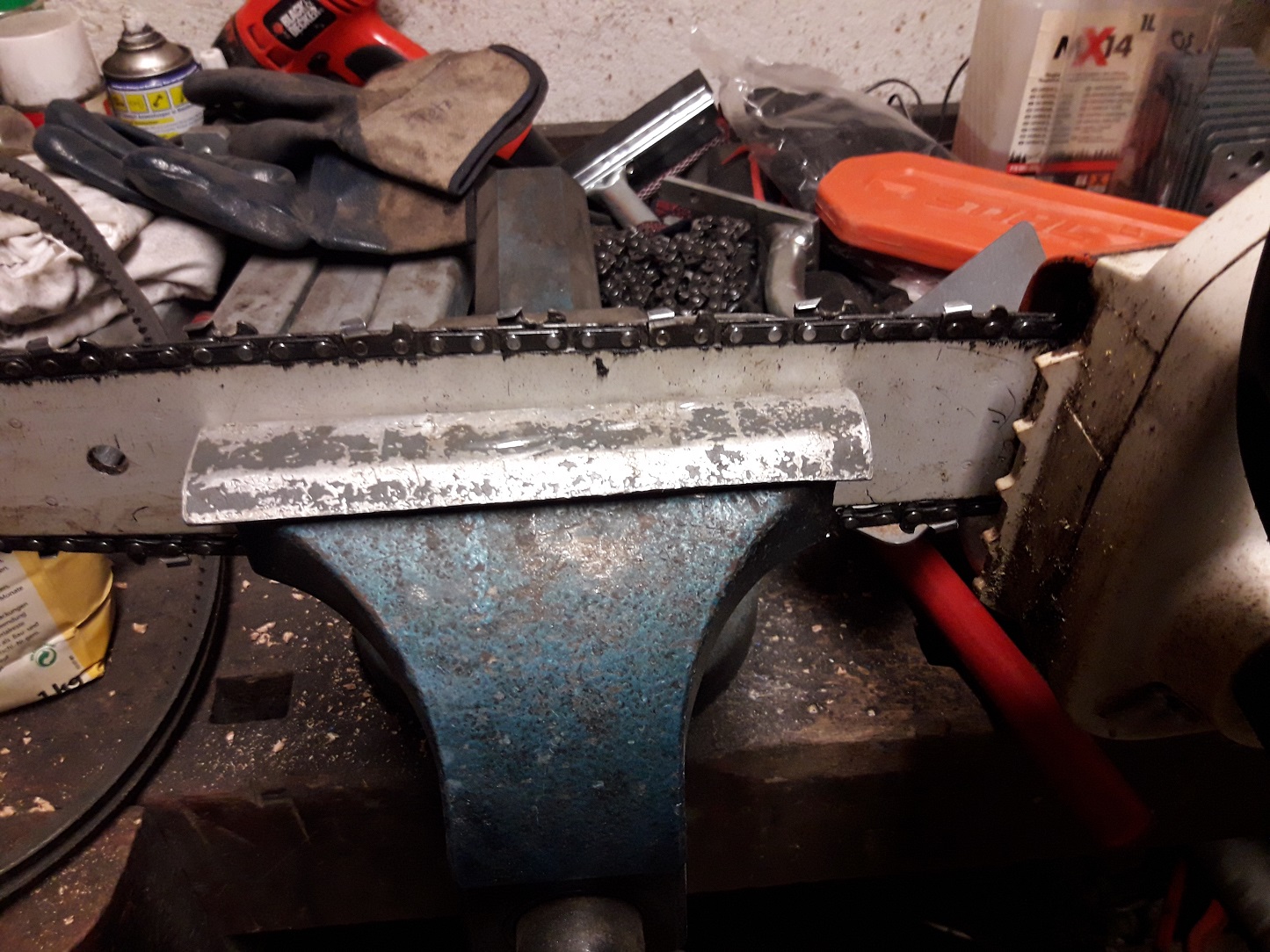 Nachbars Elektromaschine ! Hat aber angeblich geschnitten und war auf einmal Stumpf. Nach dem Kettenwechsel natürlich !