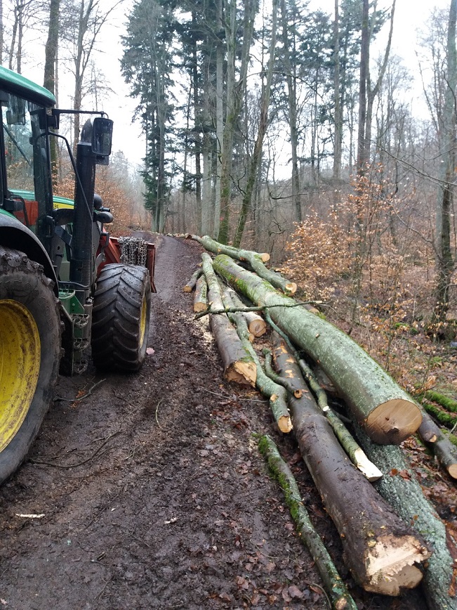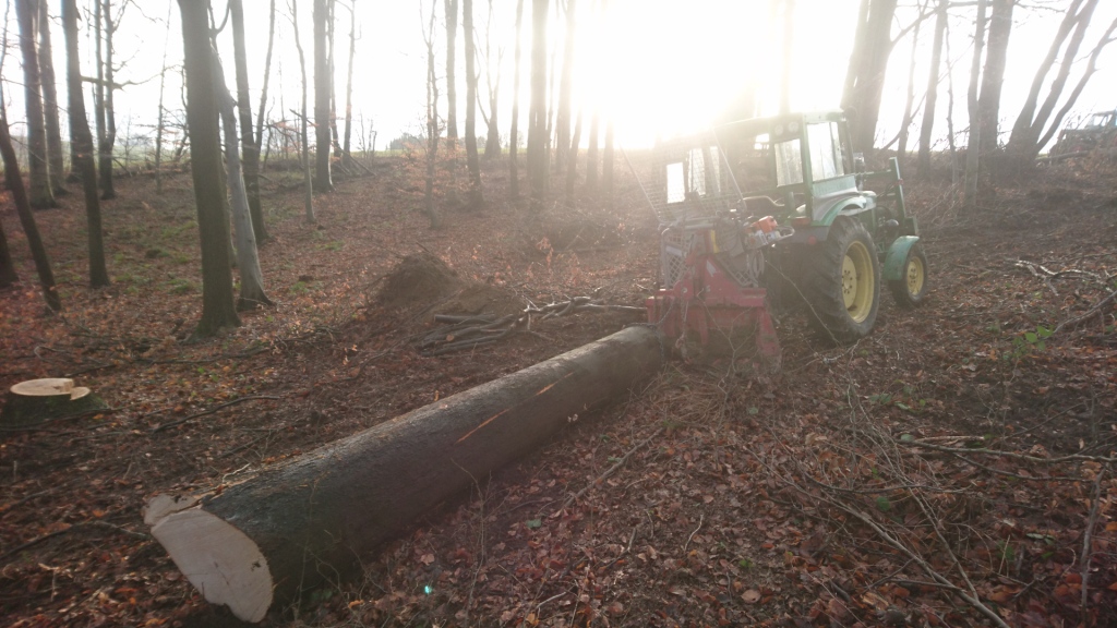 2 Fichten und teil einer Buche. Hätte nicht gedacht das es einen Flecken bei uns gibt wo man arbeiten kann.