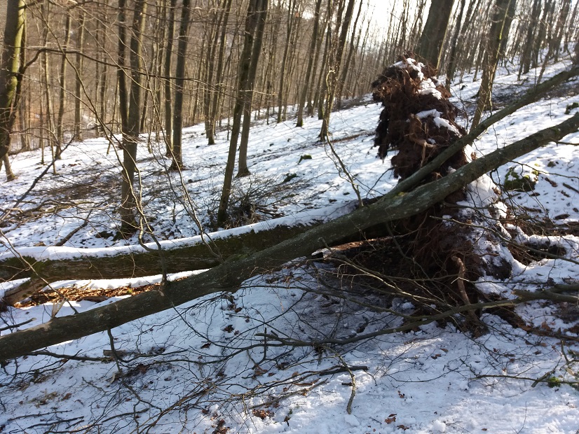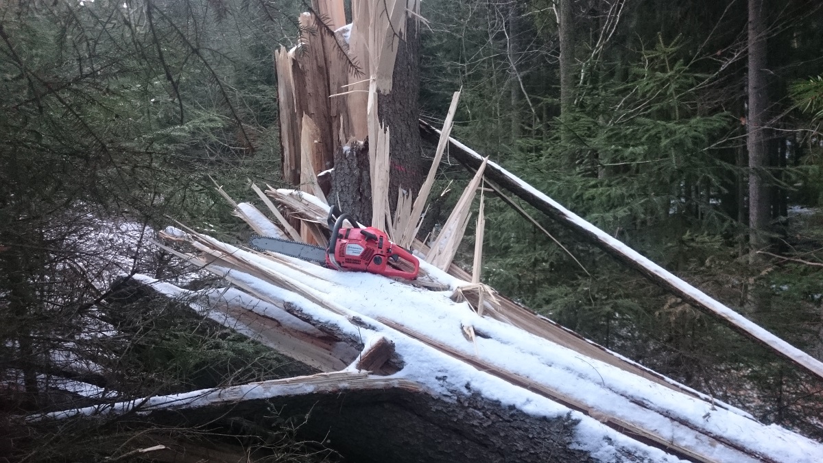Windwurf im Nachbarstück bekommen, BHD über 70cm, die ersten ca 12m Länge eingerissen, auf Grabenkante gebrochen. Der Großteil nur noch Brennholz. Schade um das schöne Stück