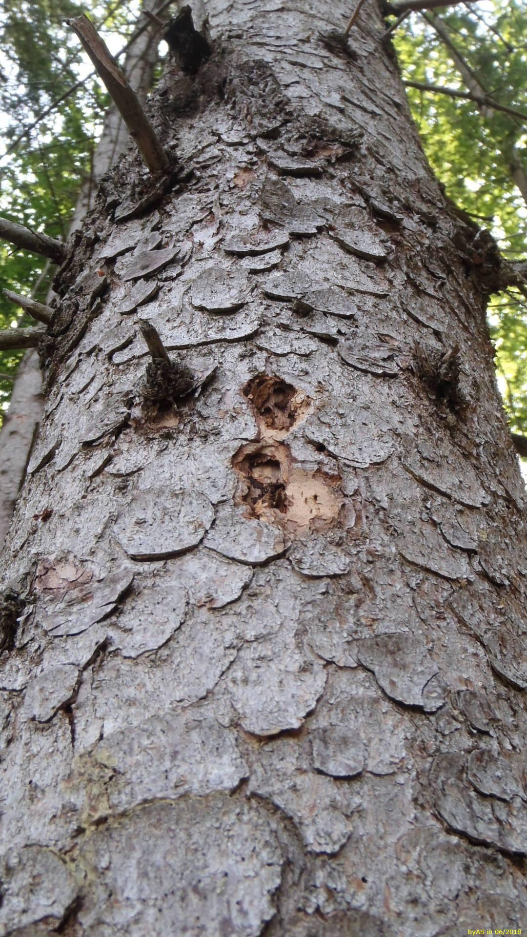 Falke hat geschrieben:........ . Wo die Rinde noch fest ist, ritze ich mit der Motorsäge längs Streifen 'rein. Nach paar Tagen läßt sich die Rinde dann viel leichter schälen.