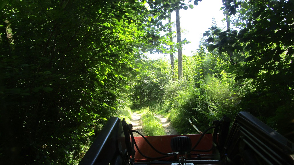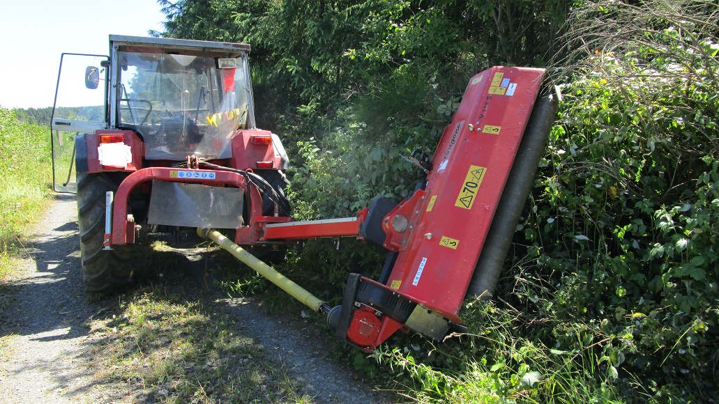 Mein MF ist nun wieder aus der Werkstatt zurück. Ölverdünnung wegen defekter Einspritzpumpe. Jetzt gilt es, die zugewucherten Wege freizuschneiden. Es muß Licht an die Wege, damit sie schneller abtrocknen. Nur trockene Wege sind hoch belastbar. Die neuen Wälder nach Kyrill wuchern in alle Richtungen. Der Böschungsmulcher macht damit kurzen Prozeß.