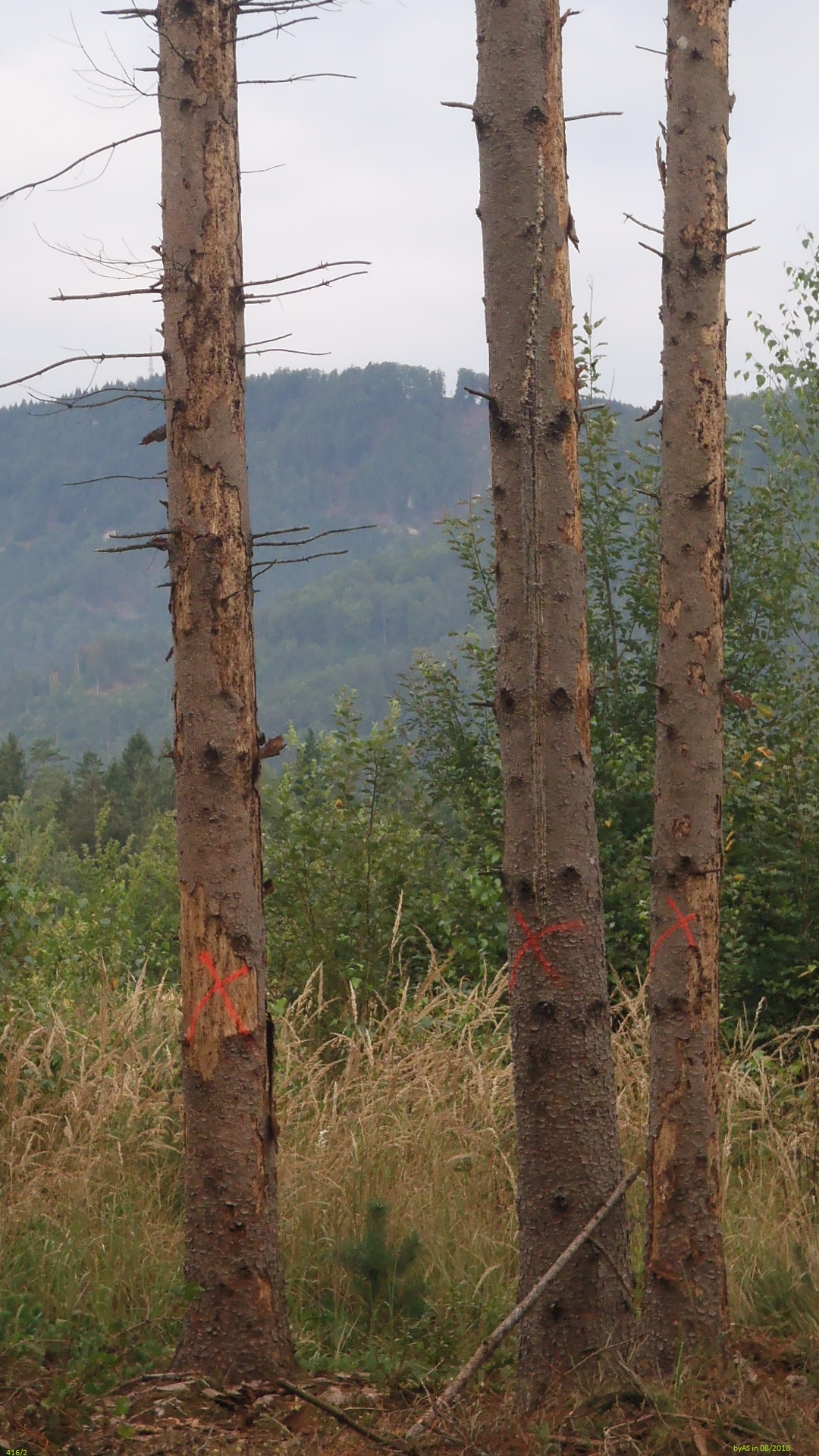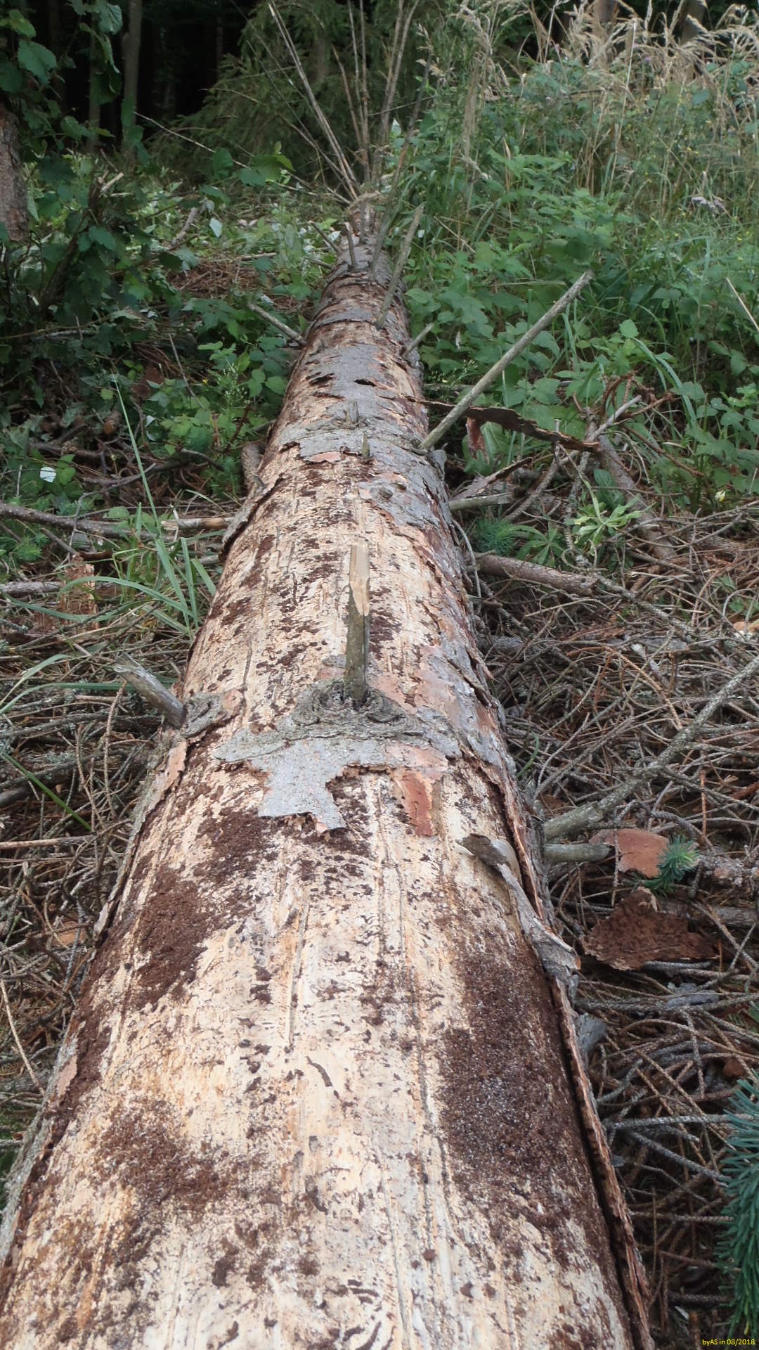 Nach Kyrill wurden hier auch verschiedentlich Folienlager eingerichtet. Irgendwo habe ich auch noch Fotos davon. Erstens hatten sich Vandalen der Sache angenommen und mit ihren Messern die sorgfälig verpackten Polter beschädigt. Aber letztlich war die ganze Mühe unterm Strich kein Erfolg, weil die erhoffte Konservierung nicht wie gewünscht eintrat. Und es war im Vergleich zu den gigantischen Nasslagern nur immer ein kleines Häufchen, das so hermetisch verpackt werden konnte.
