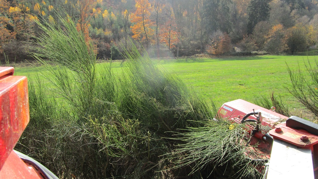 Das grobe Material ist frisch aus der Böschung. Es ist Schiefergestein, das vor Ort ansteht. Deshalb können wir an vielen Stellen die Böschung so steil machen. Außerdem brauchen wir keinen Schotter aus dem Steinbruch bei zufahren, sondern brauchen das Material nur max. 500 m zu transportieren.