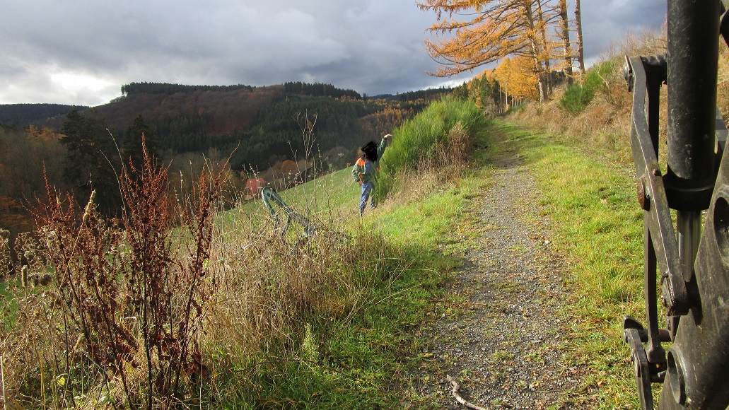 Die Böschung bei Bild 2 ist noch so steil, weil beim Fällen der Käferfichten oberhalb des Weges das Polter zu nah am Weg angelegt wurde ( am Wurzelstock genau auf der alten Böschungskante ). Auf Bild 3 ist es das Polter, das man etwas höher im Bild sieht.