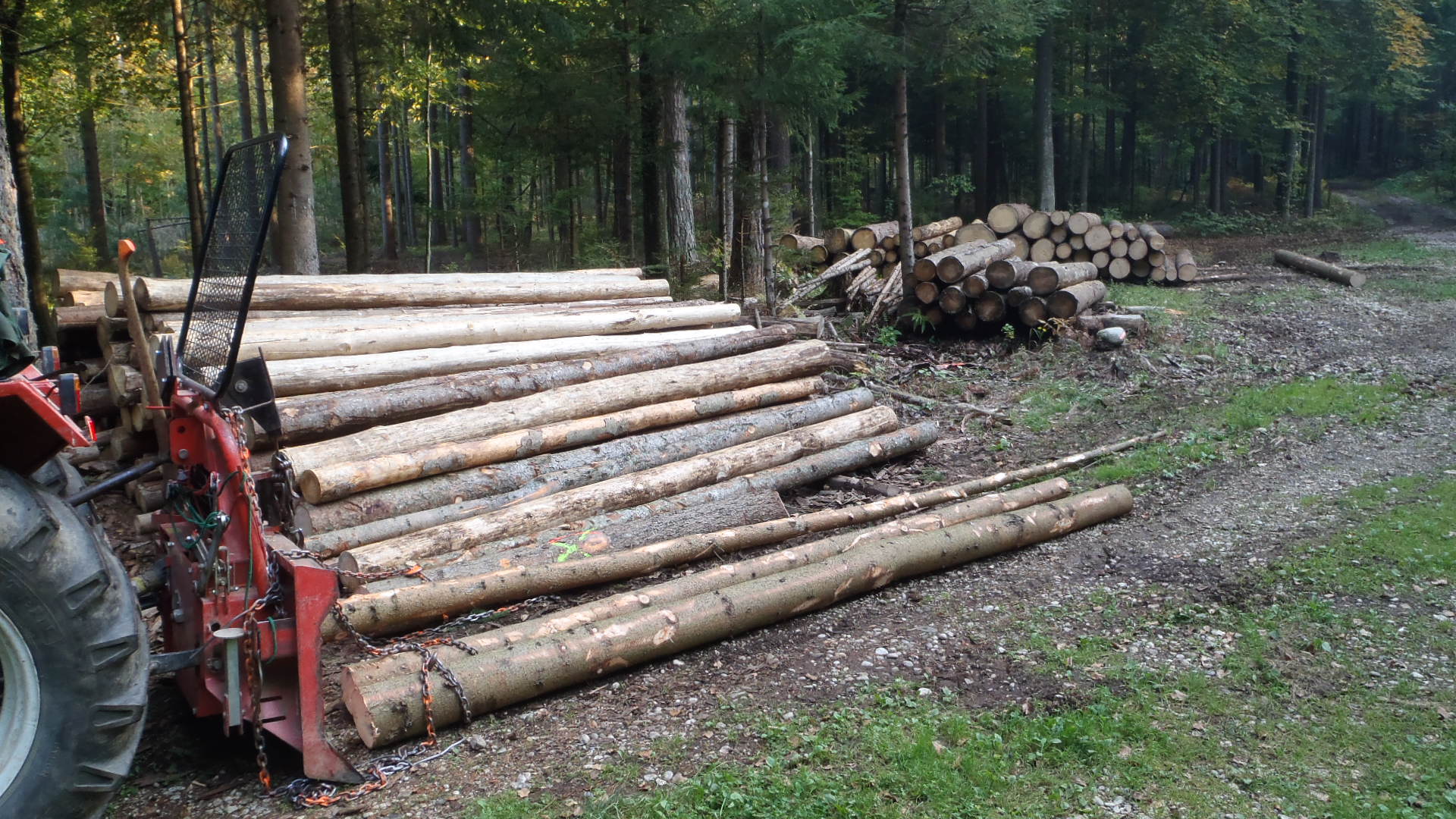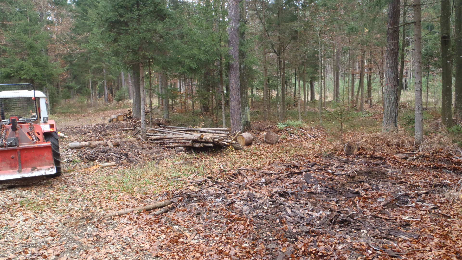 Das Wegenetz selber ist 1934 bei der Flurbreinigung angelegt worden. Die Wegeparzellen sind im Wald meist breit genug für einen ordenlichen Weg anzulegen, aber oft haben die Waldbesitzer zu nah oder gar noch auf der Wegeparzelle gepflanzt. Hat in den 60er und 70er Jahren ja auch keinen interresiert, da max 60 ps ohne Allrad unterwegs waren und die noch auf die alten schmalen Wege passten. Anfang der 70 er Jahre sind die dann noch mal gegrädert worden und liegen seitdem.
