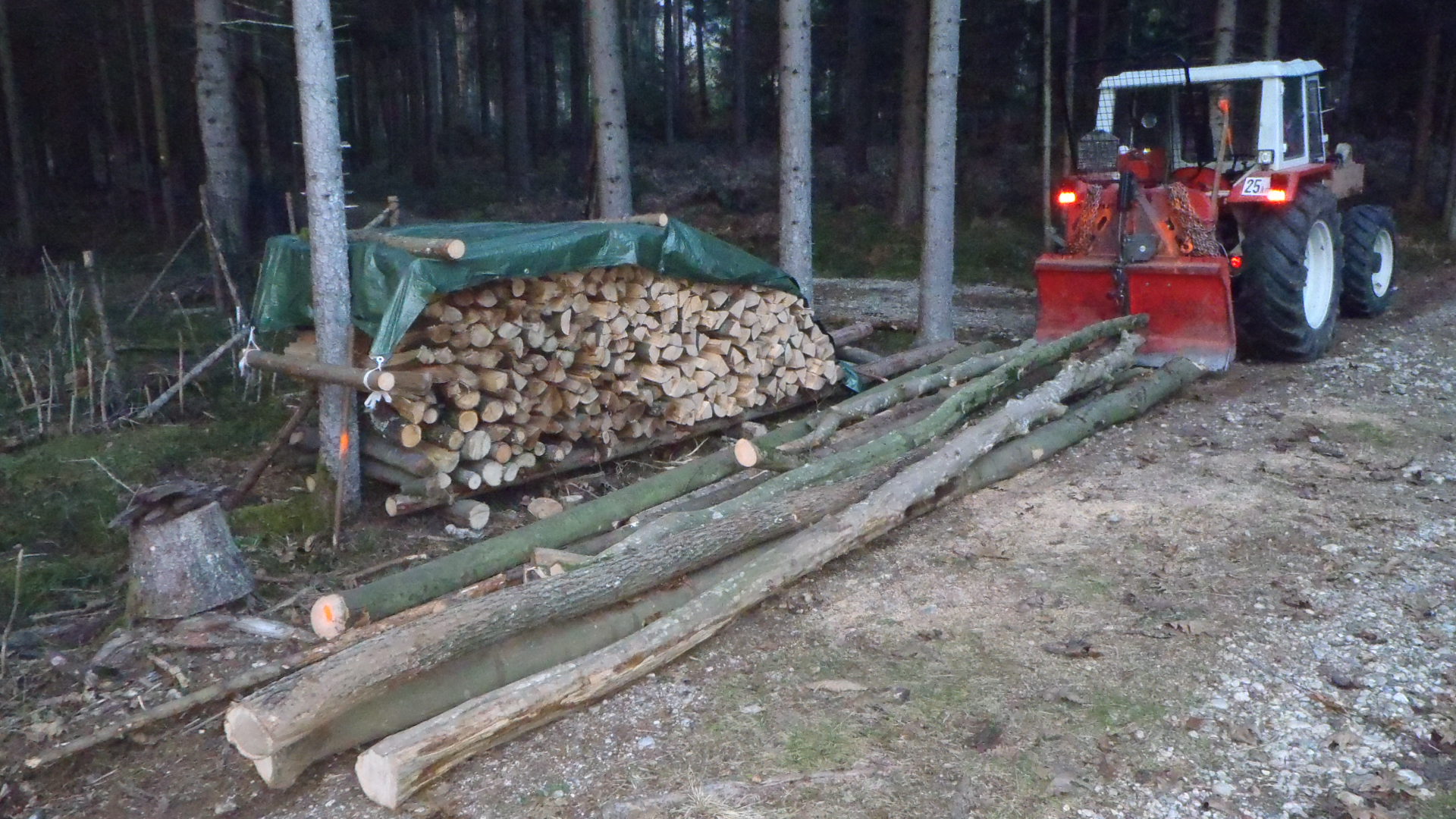 Vorhin Ketten umgestülpt. Geht auch mit einer kurzen MS-Kette, allerdings mit mehr Kraftaufwand! Über eine Werkbankkante, oder besser über eine Leitersprosse legen den Innenteil der Kette, und dann nach unten drücken und mit der Hand nach außen drehen die Kette.