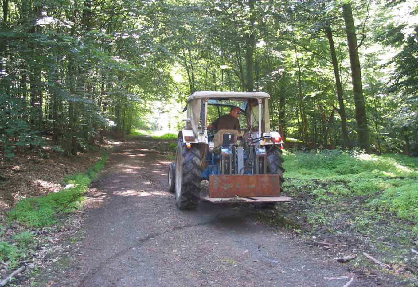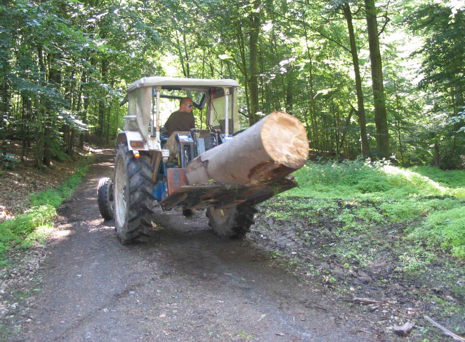 Das Team: Mein Vater an der Motorsäge, mein Opa und sein Bruder haben Äste vom Weg beseitigt und ich habe die Bäume zum Holzplatz gerückt.