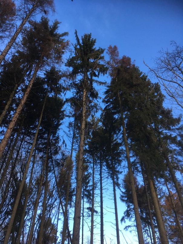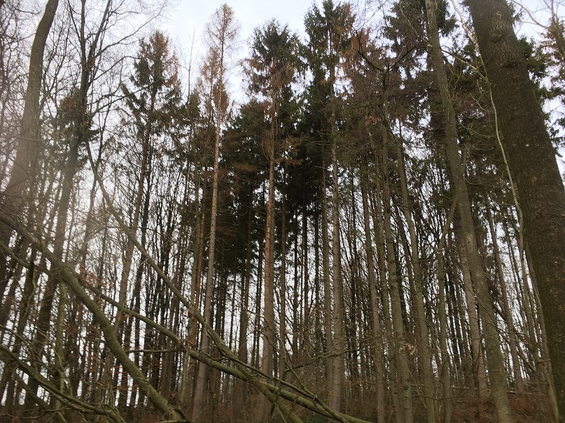 Auf meinen 8 ha stehen (oder lehnen) nur zwei oder drei Spechtbäume an sehr schwer zugänglichen Stellen.