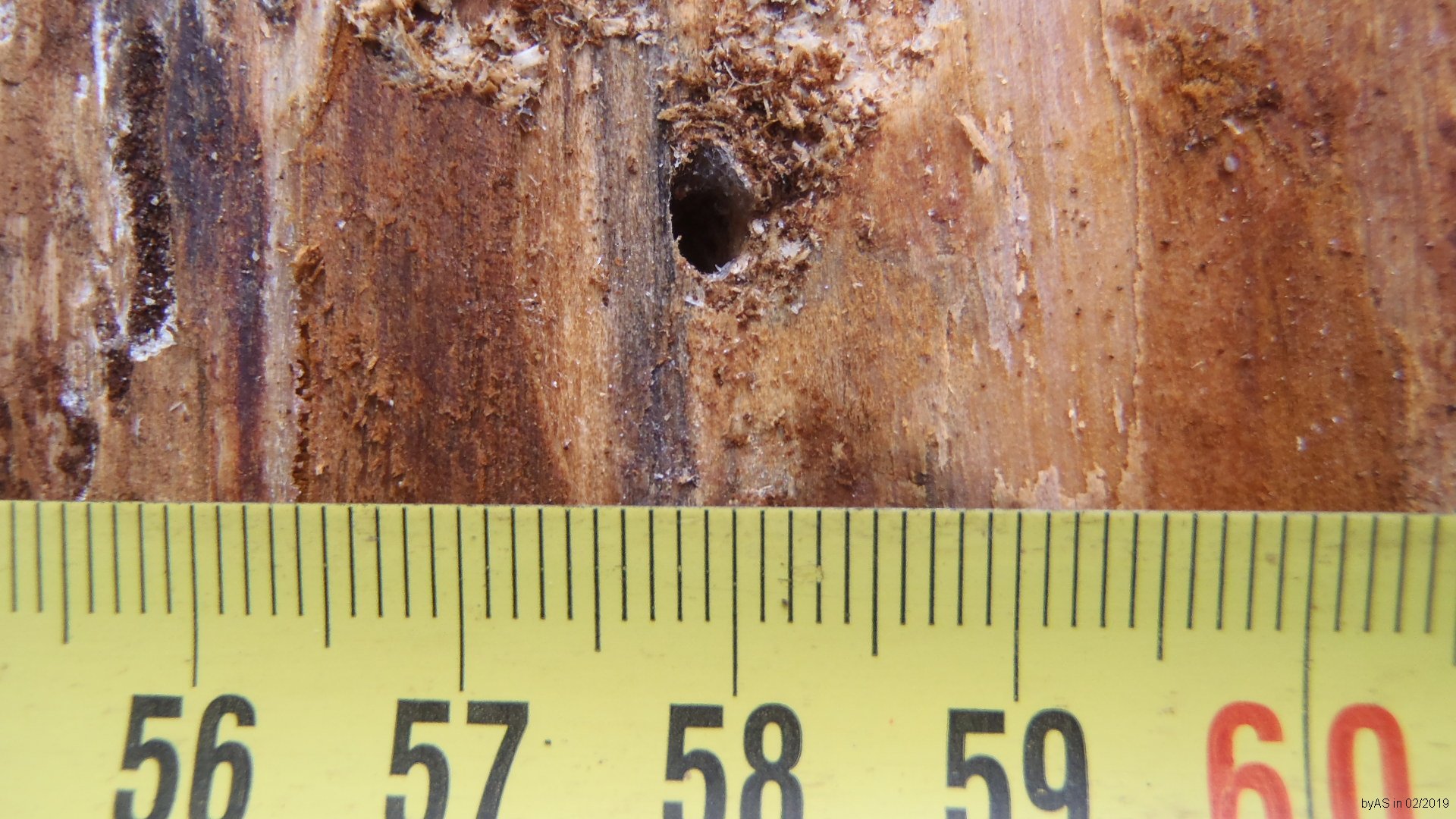 die Bohrlöcher waren größer als beim Buchdrucker üblich, und gingen ins Holz. Keine Fraßgänge ...