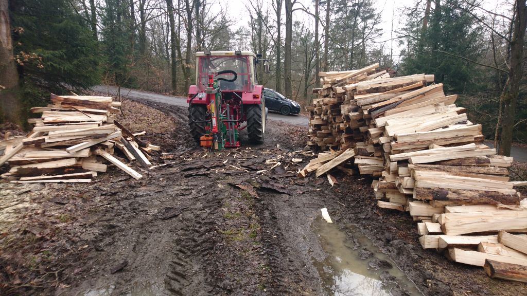.... bevor ichs vergess, die Bilder von gestern. Hoffentlich war es die letzte Fuhre für diese Saison aus meinem Wald. Merkt man gleich wenn man nur mit halb vollen Anhänger fährt .