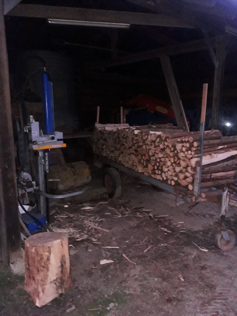 Guten Abend Der Brennholzhaufen wächst . Heute kam noch ein kleines Häufchen dazu. Donnerstag und Freitag Abend hab ich schon mal begonnen mit dem Aufspalten .