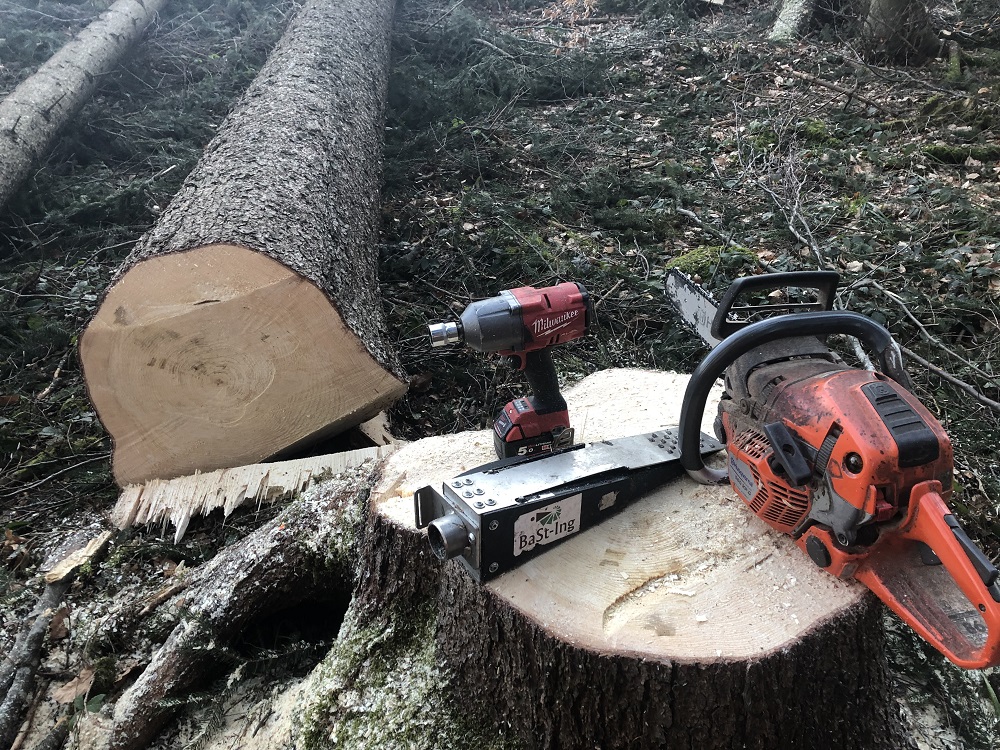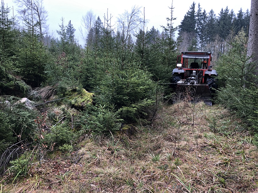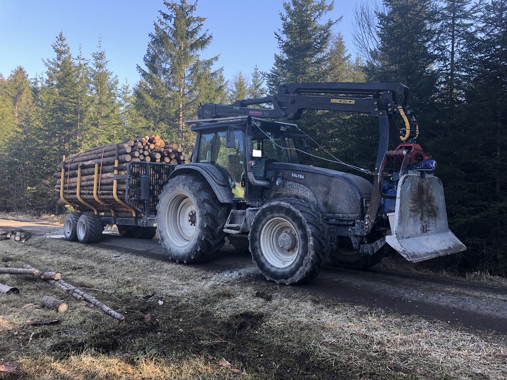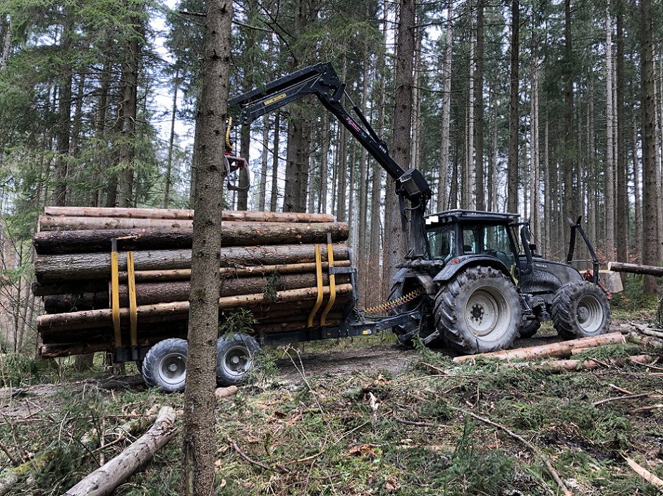 Neuer Traktor, neue Seilwinde, neuwertiger Rückewagen - nur der Not keinen Schwung lassen.