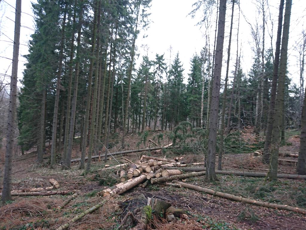 Und da kommt dann wieder die Aussage von weiter oben zu tragen, bzw. der Rat vorsichtshalber auch Bäume mit paar braunen Ästen weg zu machen. Mit der Strategie hätten wir quasi im Winter jede einzelne Fichte aus dem Bestand schneiden müssen - was tatsächlich die Ersten begonnen haben - aber vielen ist das Ausmaß dann schnell bewusst geworden und die Prioritäten haben sich verlagert auf das Fällen von eindeutig hoffnungslosen Fällen. Wie gesagt, die Situation ist momentan einfach von den Meisten nicht sinnvoll in den Griff zu bekommen.