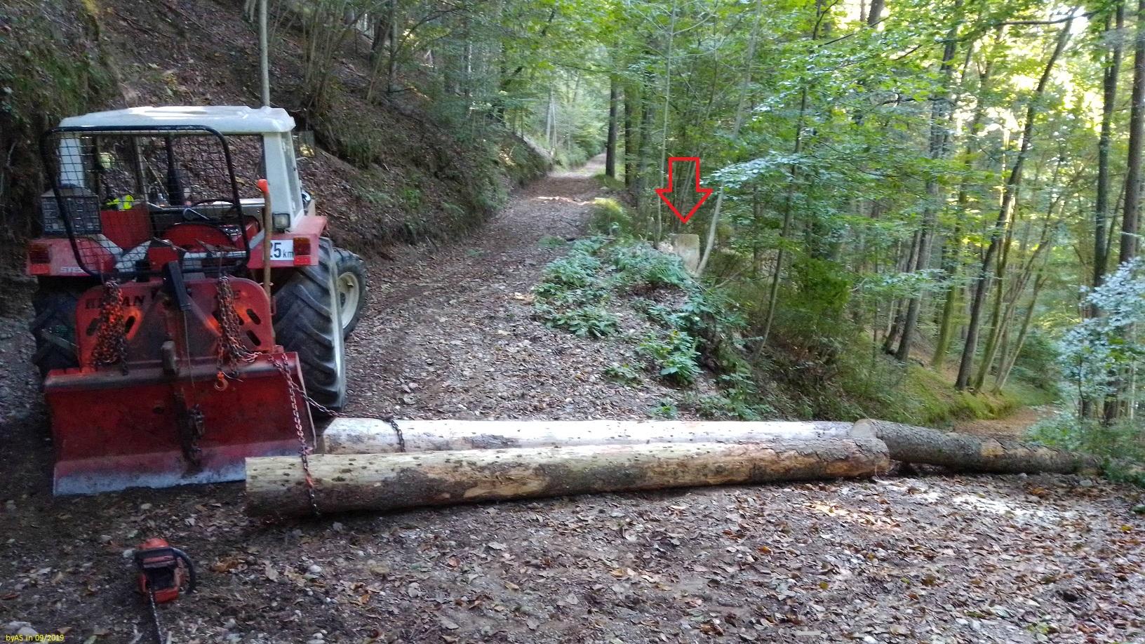 stand seit Jahren eine vertrocknete Fichte. Ich hatte echt starke Bedenken, dass beim Rücken ein Bloch anstreift oder sich verhakt - und so den Baum umreisst, oden der Wipfel 'runterkommt.