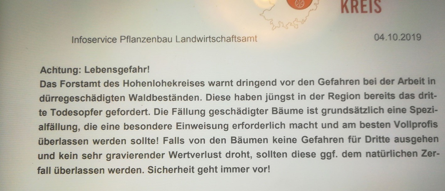 Cheffe von WBV sagt, er kann nur noch 5€ pro Fm auszahlen, bei Harvester + Forwarder Aufarbeitung.
