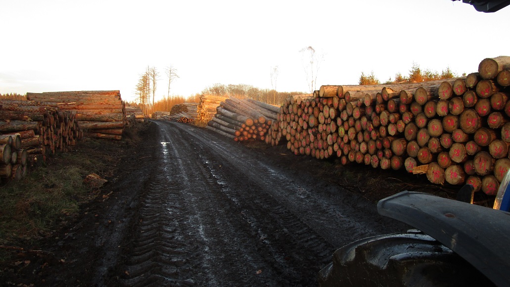 Kran am Traktor, klappbare Rückekarre, alles wendig im Bayrischen Wald.... Du hast echt eine Ahnung von Waldbewirtschaftung.
