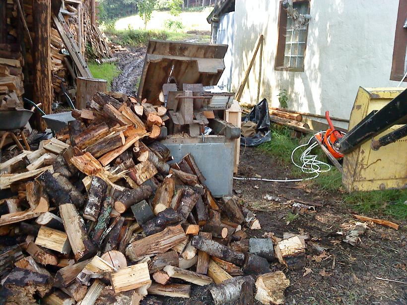 So hier mal ein paar bilder vom ausprobieren meiner umgebauten Kreissäge. Läuft echt super und ich hab grad ma 35 (sägezeit ) für den Haufen ich denk ma so 1,5 -1,8 Srm gebraucht ist aber noch ausbaufähig die Leistung Nur die ständigen Regesnschuer haben gestört. das eine bild ist von meinen Zinkenverlängerungen da ich heut holz vonnner wiese holen musste und da muss man ja auch ma was vorne draufbekommen.