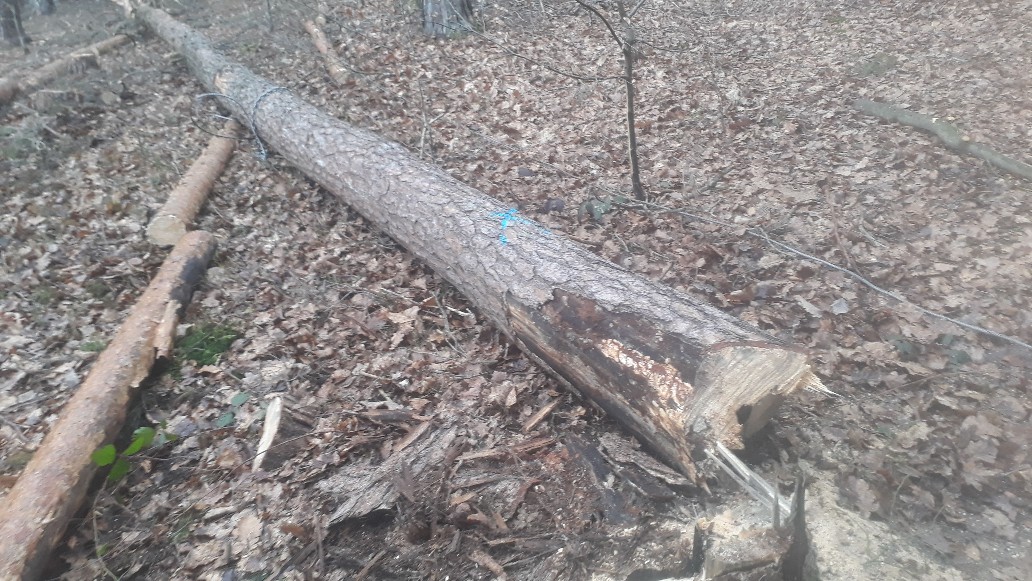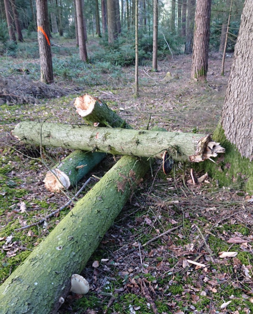 Die unteren 9m wandern ins Hackholz, der Rest darf im Wald verrotten![]()