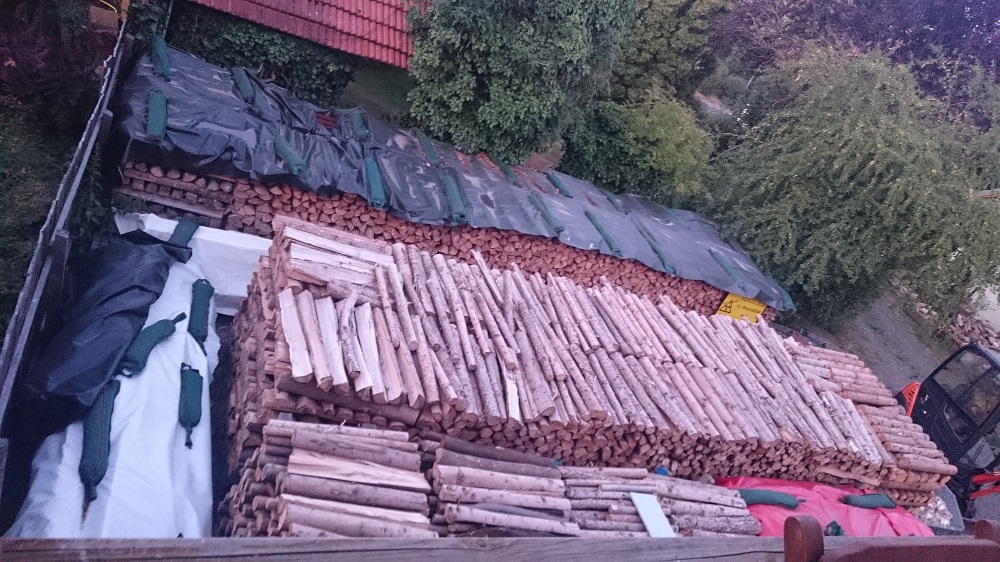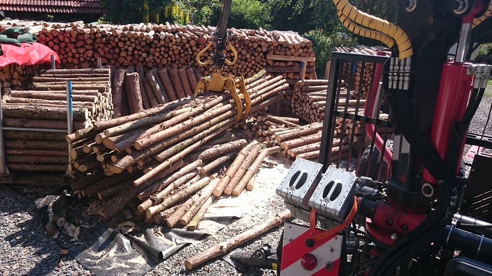 Der Verbrauch liegt bei 25-30 Ster im Jahr, diesen Winter eher weniger, wenn alle Umbaumaßnahmen abgeschlossen sind dann kann ich bis zu 90 Ster gespaltenes Holz lagern, und zusätzlich noch 50 Ster Fixlängen.