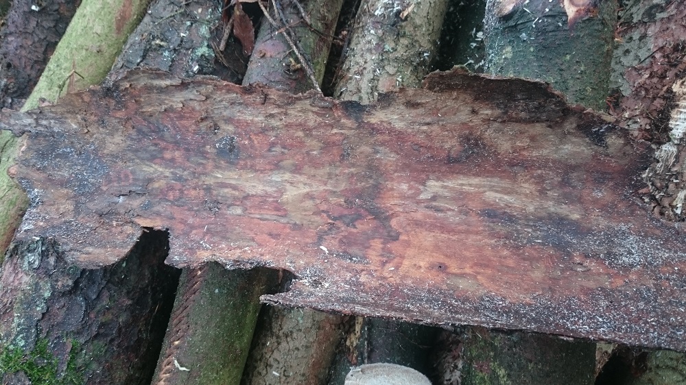 Einen habe ich wohl im Sommer übersehen, da hatte sich die Rinde bereits großflächig gelöst.