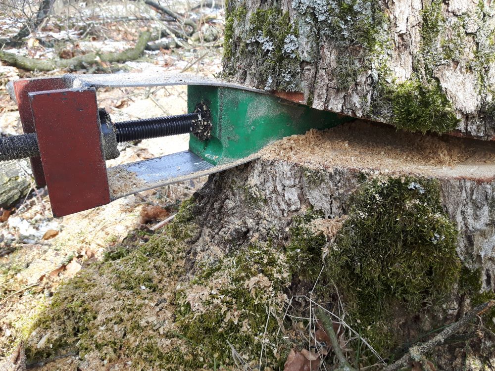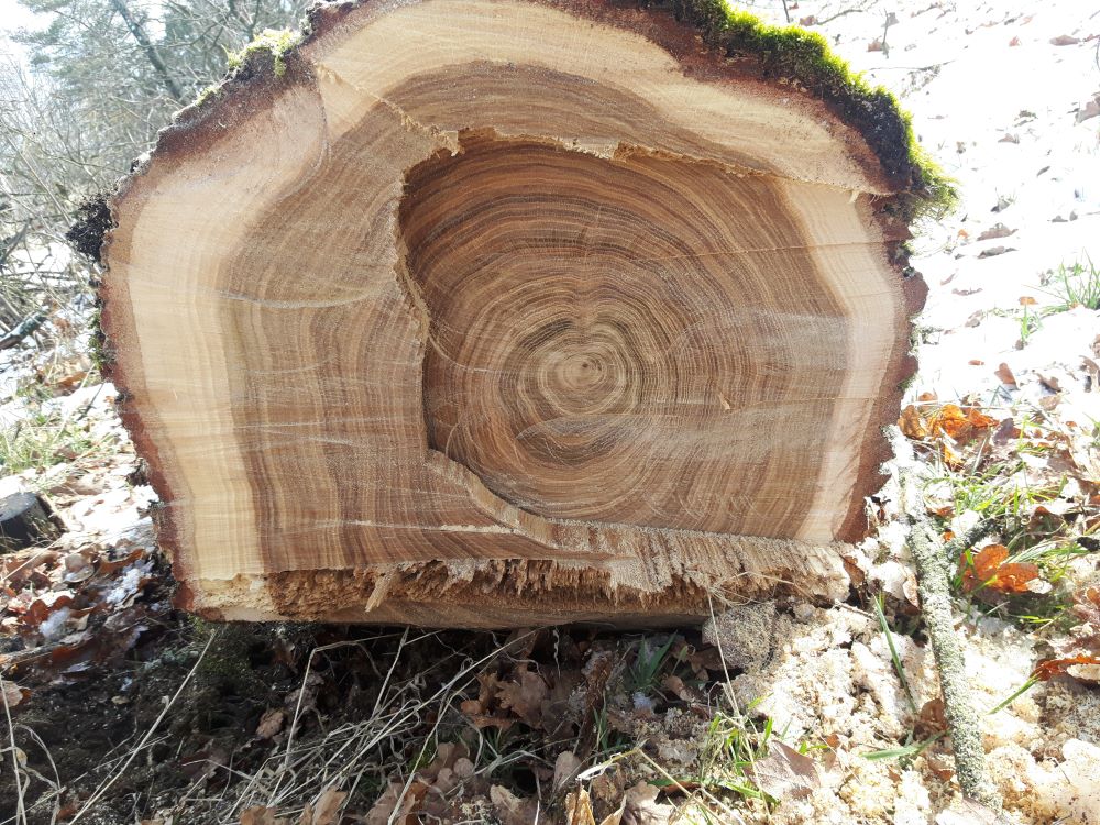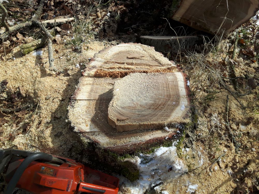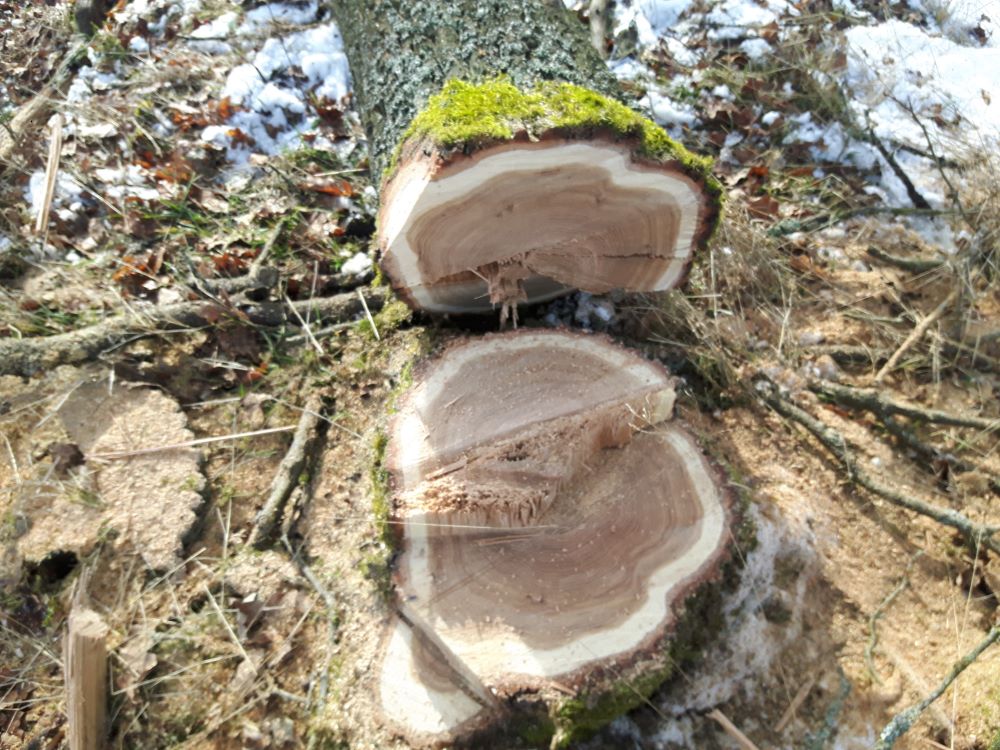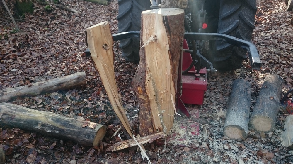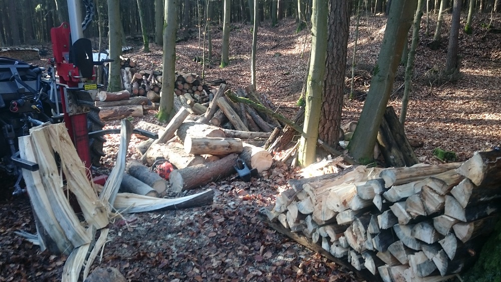 Darum muß ich bei dem aktuellen Schadholzanfall wieder im Wald spalten und aufschichten, wodurch ich die Scheite einmal zusätlich transportieren und zweimal zusätzlich anfassen muß