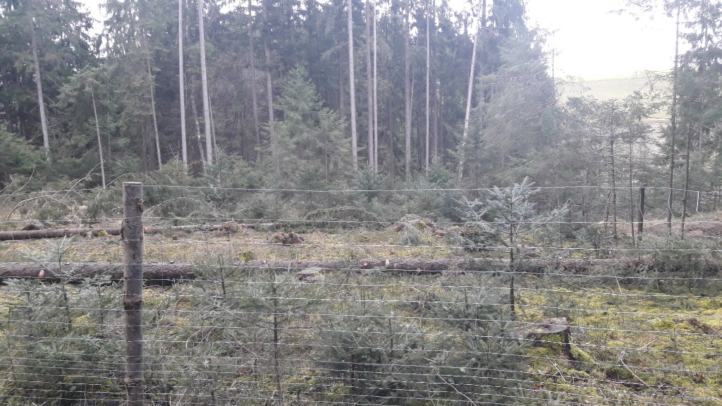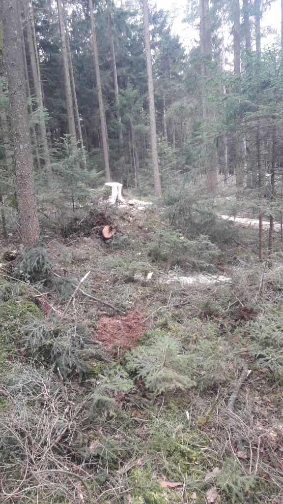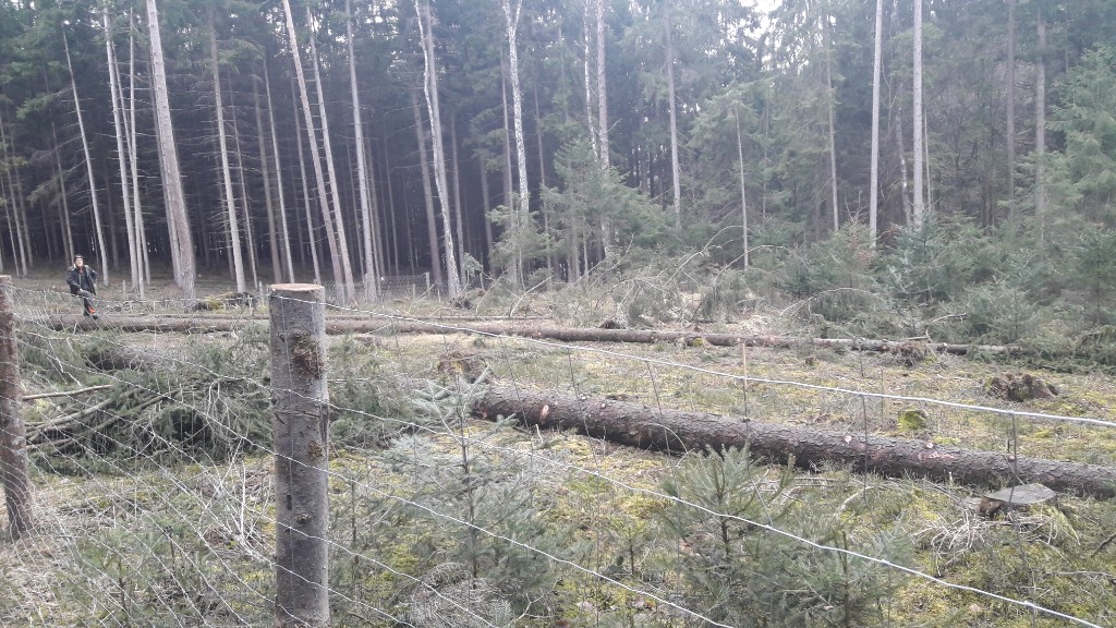 Bild von gestern, zusammensammeln von unterständigen vertrockneten Fichten im Kiefern / Lärchenwald auf Sand.