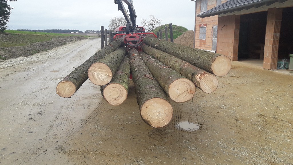 im "Sabine" Tröd hab ich geschrieben das ich das Brennholz möglichst wenig von Hand anfassen will, also mit dem RüWa heimfahren, im Greifer aufsägen, spalten und direkt aufschichten.