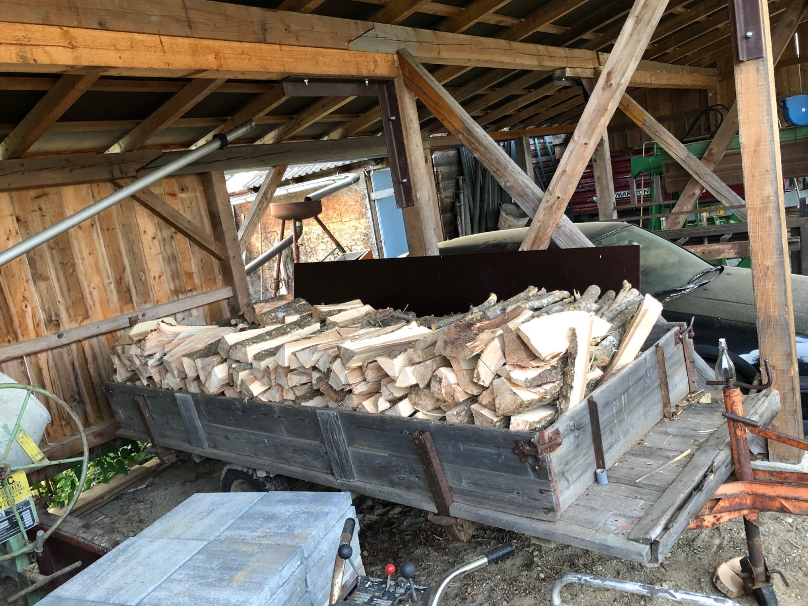Insgesamt stehen jetzt 60RM Scheitholz (50cm) für den Holzvergaser und 30SRM Kleinholz (<30cm) für den Lohberger Küchenherd ums Haus.
