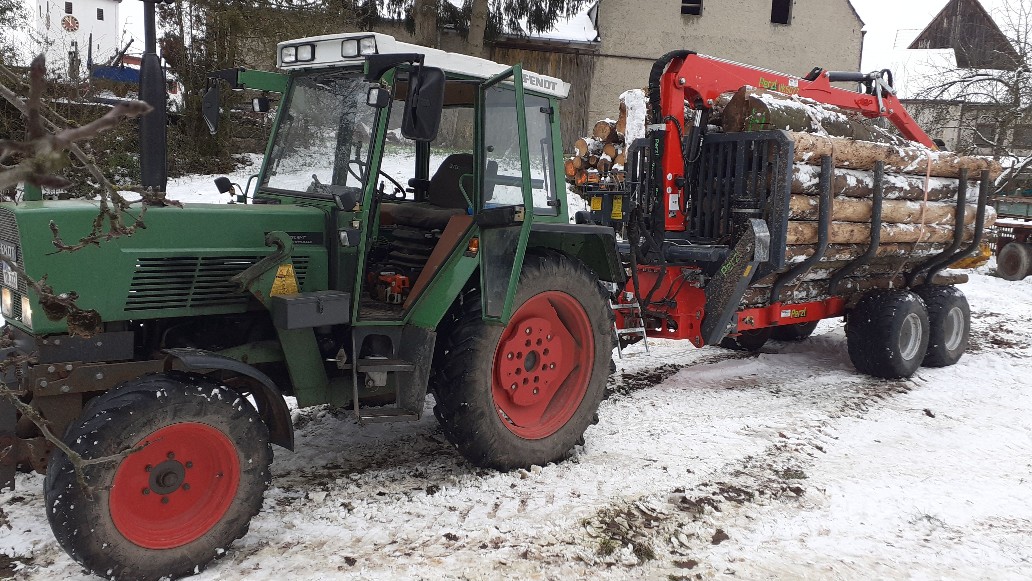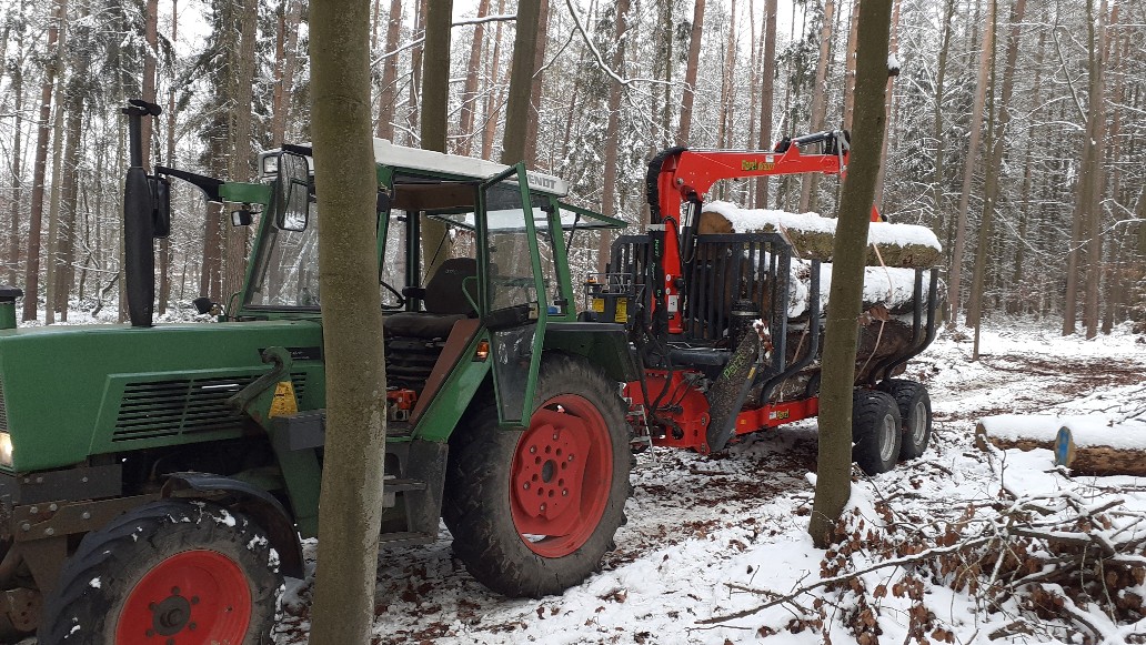 Sauber was du mit deinem kleinen Fendt, wohlgemerkt Hinterradmaschine so für ne Ladung auf dem RW aus dem Wald ziehst. Aber es ging nur gerade oder. Weil ich denke beim Bremsen dürfte man trotz Drulu doch was merken?
